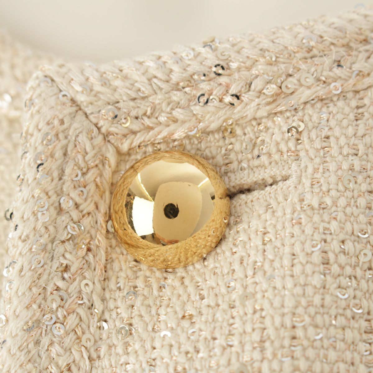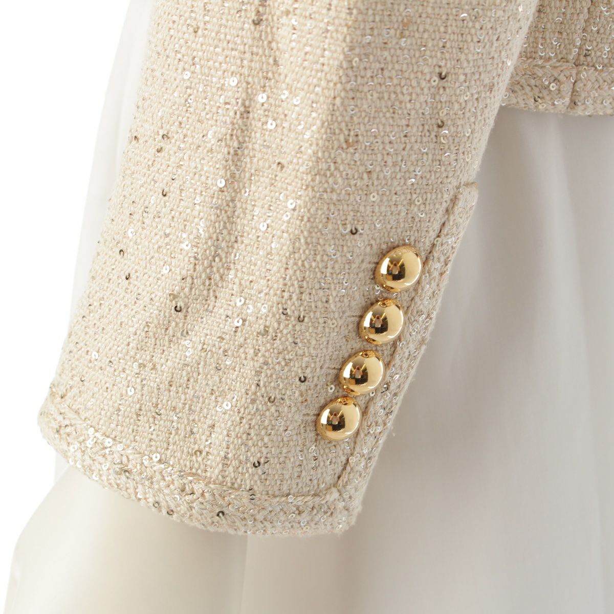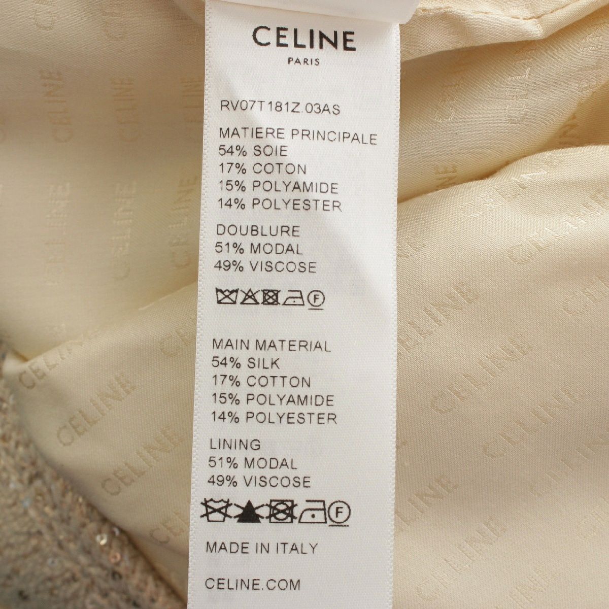 セリーヌ シルクツイード スパンコール ノーカラー チェルシー ジャケット アイボリー 36