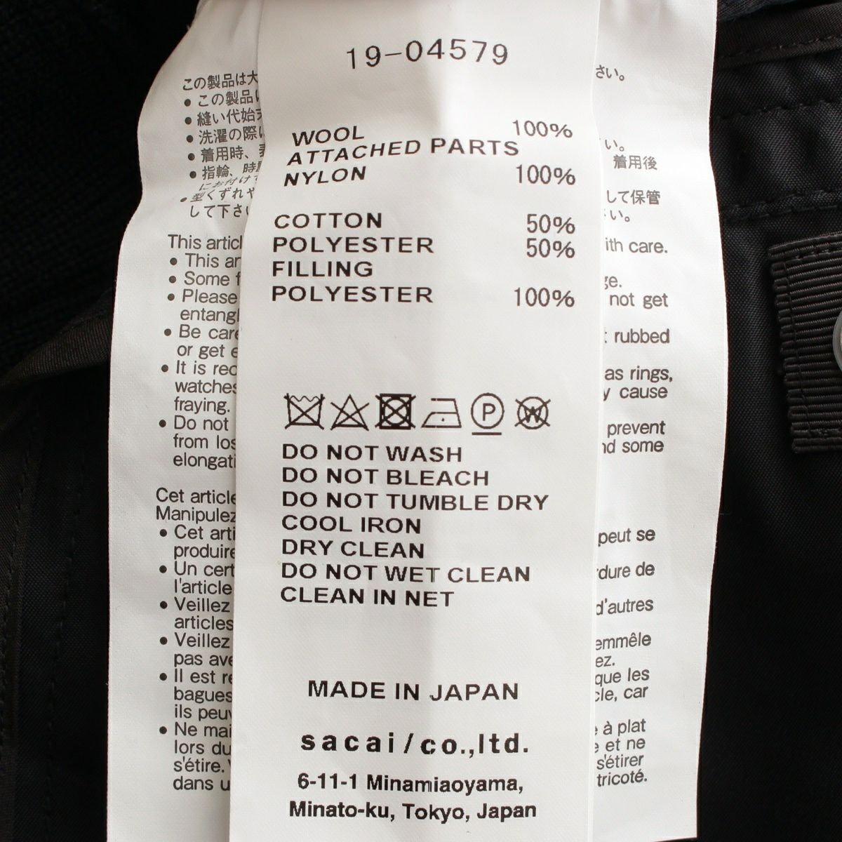 サカイ 19AW ウール ドッキング ボンバージャケット ジャケット 19-04579 ブラック 3
