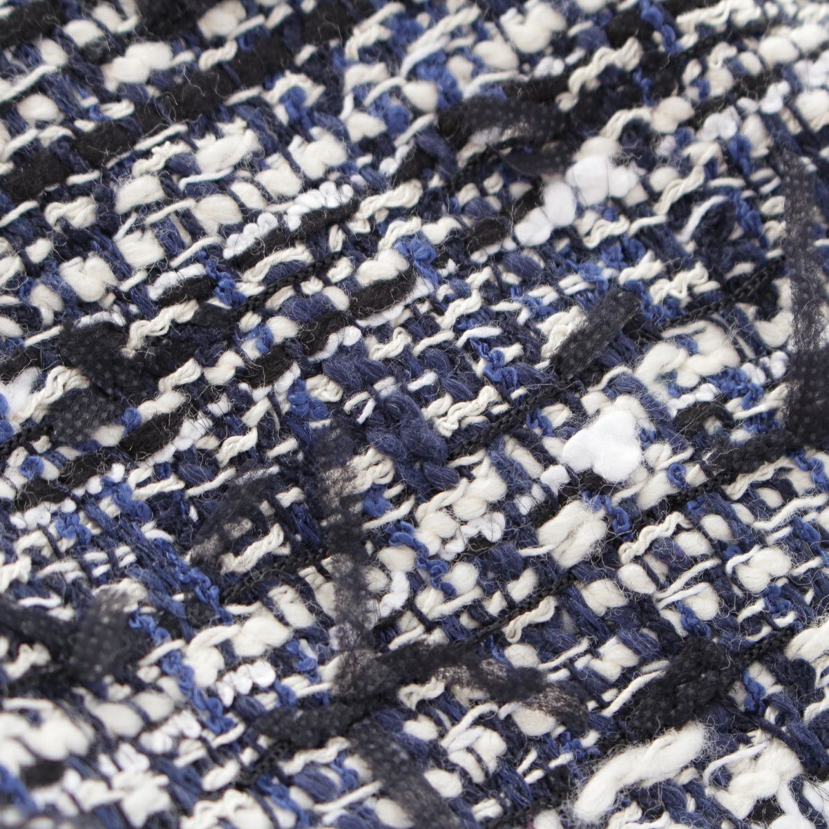 ドゥロワー 23SS コットン ファンシー ツイード ノーカラージャケット 6522-234-0756 ネイビー ホワイト 36