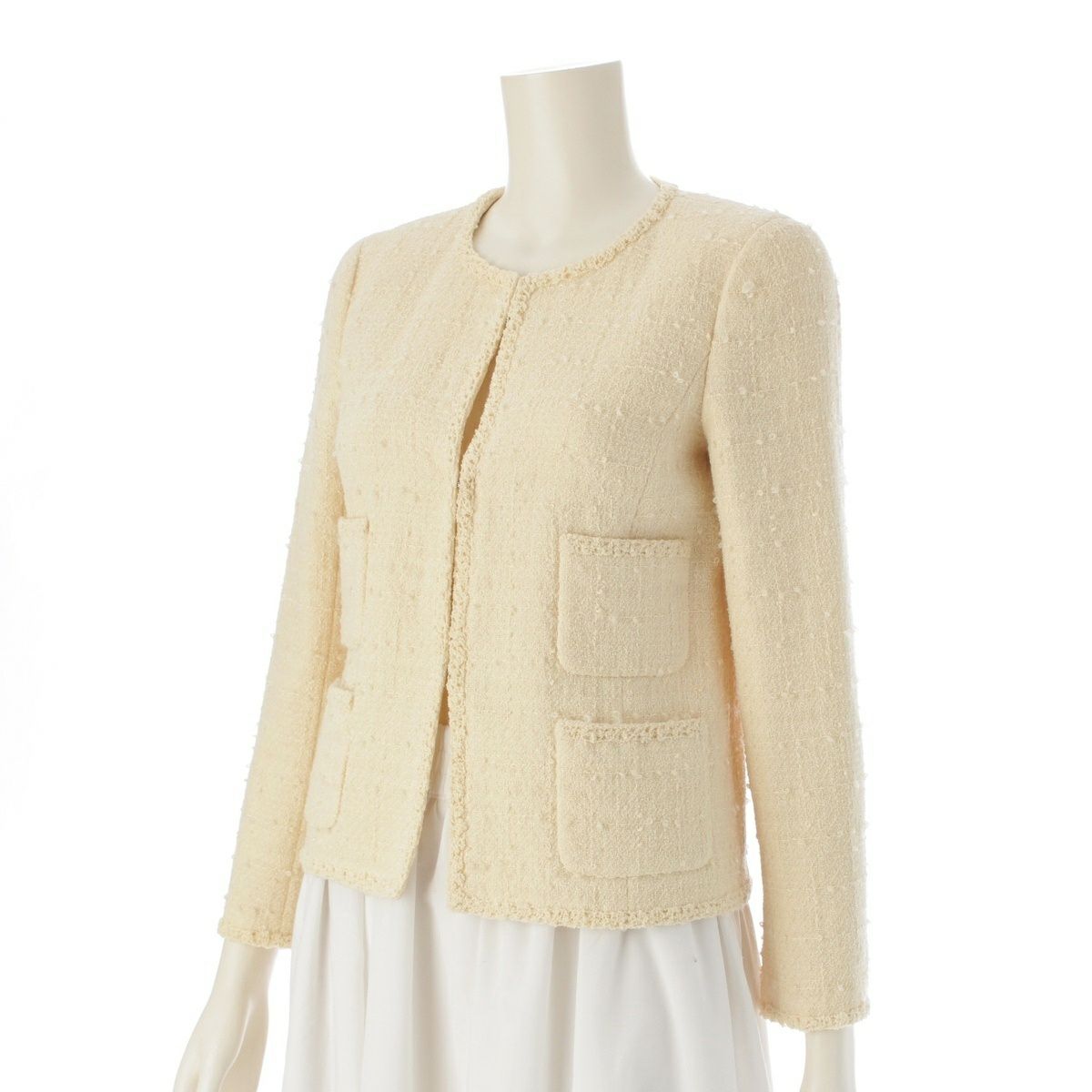 シャネル ウール ココマーク ツイード ノーカラージャケット アウター P36333 アイボリー 34