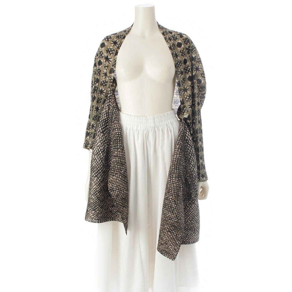 プリーツプリーズ イッセイミヤケ 幾何学柄 変形 ジャケット アウター カーキ系 3