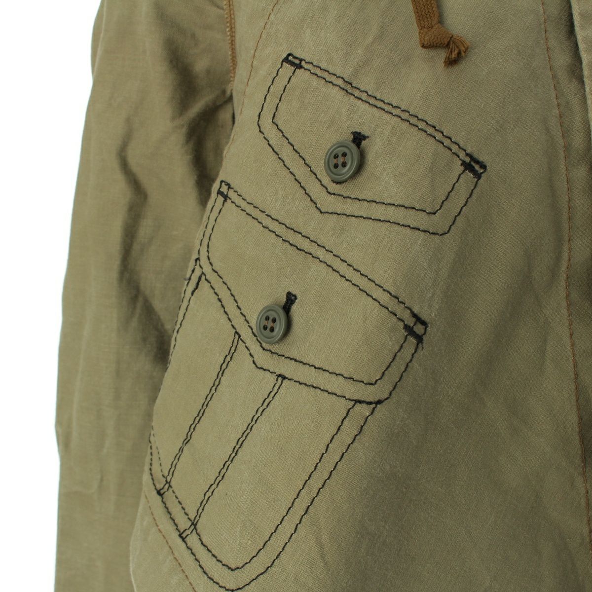 ダメージ箇所: 腕、袖口、フード縁、首元内側等に変色/擦れ、ボタンに縫製解れ、
