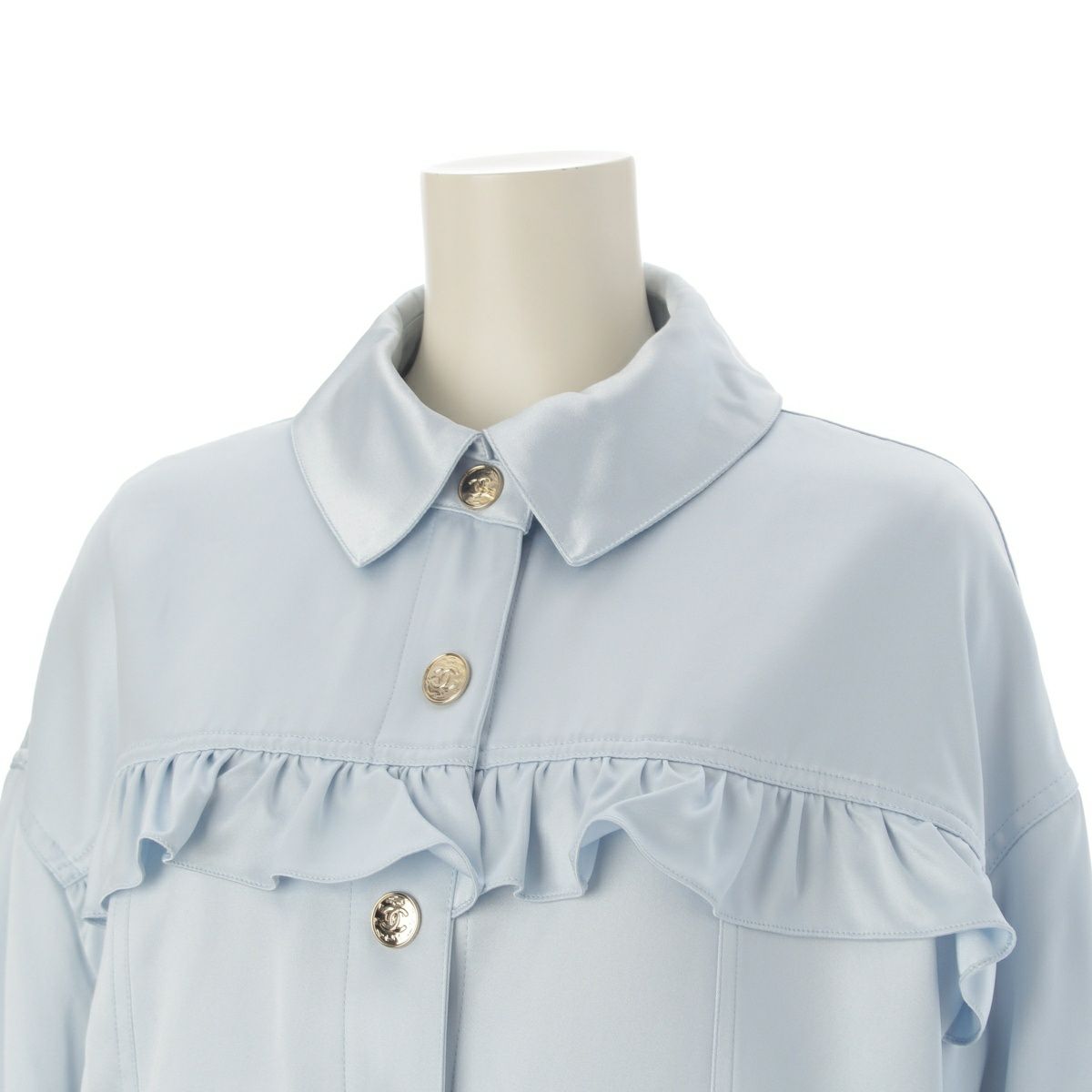 シャネル 25B LOOK27 シルク サテン ココマーク ハート フリル ジャケット アウター P80433 ライトブルー 38