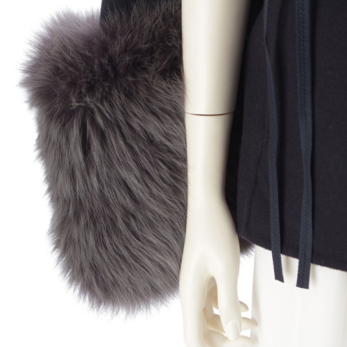ドゥロワー 22A/W ウールケヌキ フォックスファースリーブ ショートコート ジャケット 6522-234-0733 ネイビー 36