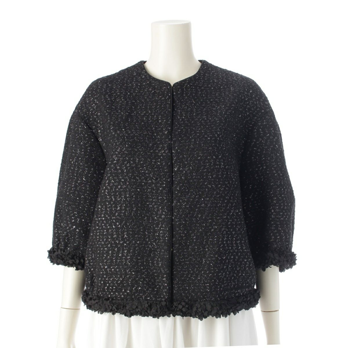 ドゥロワー コットン ツイード ラメ ノーカラージャケット アウター 6521-299-1315 ブラック 38
