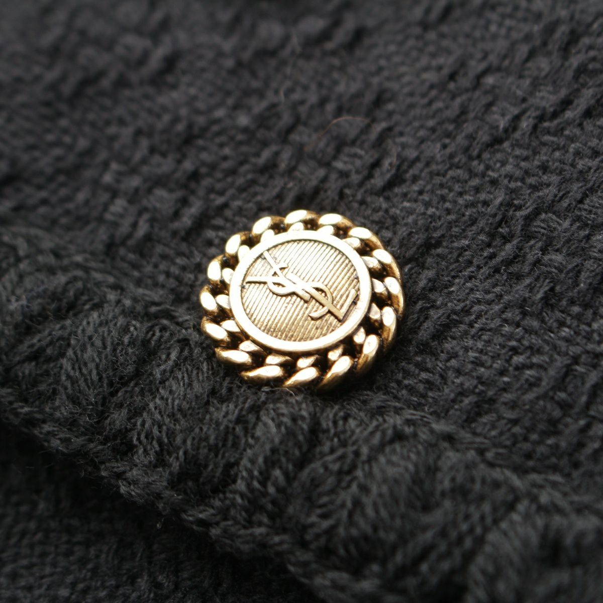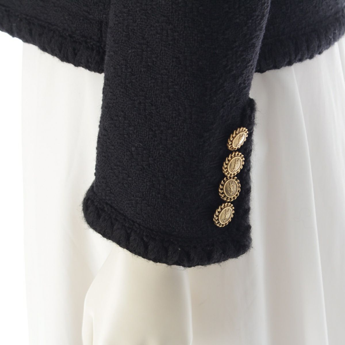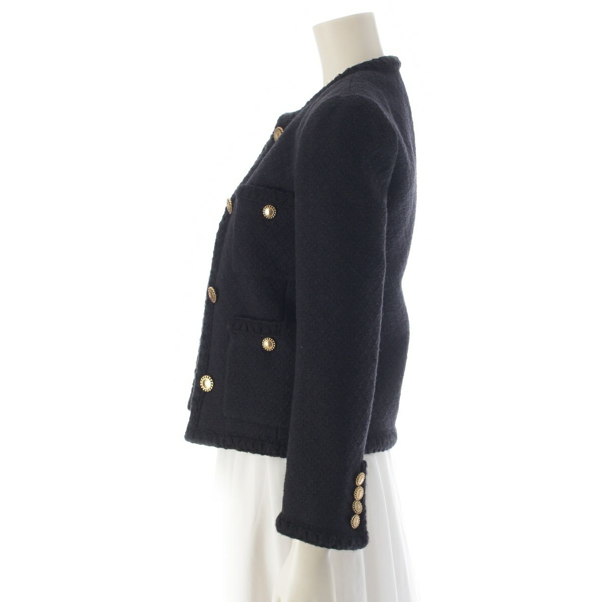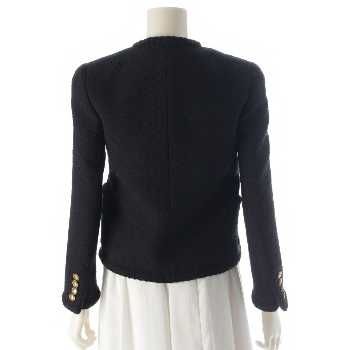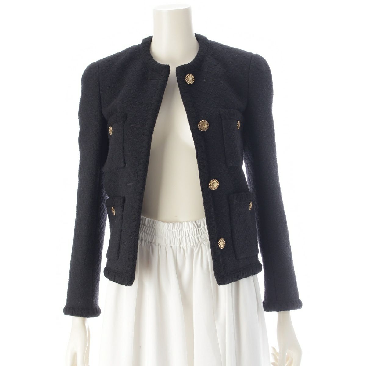 サンローラン 22年 ウール YSL 金ボタン ツイード ノーカラージャケット アウター 680280 ブラック F34