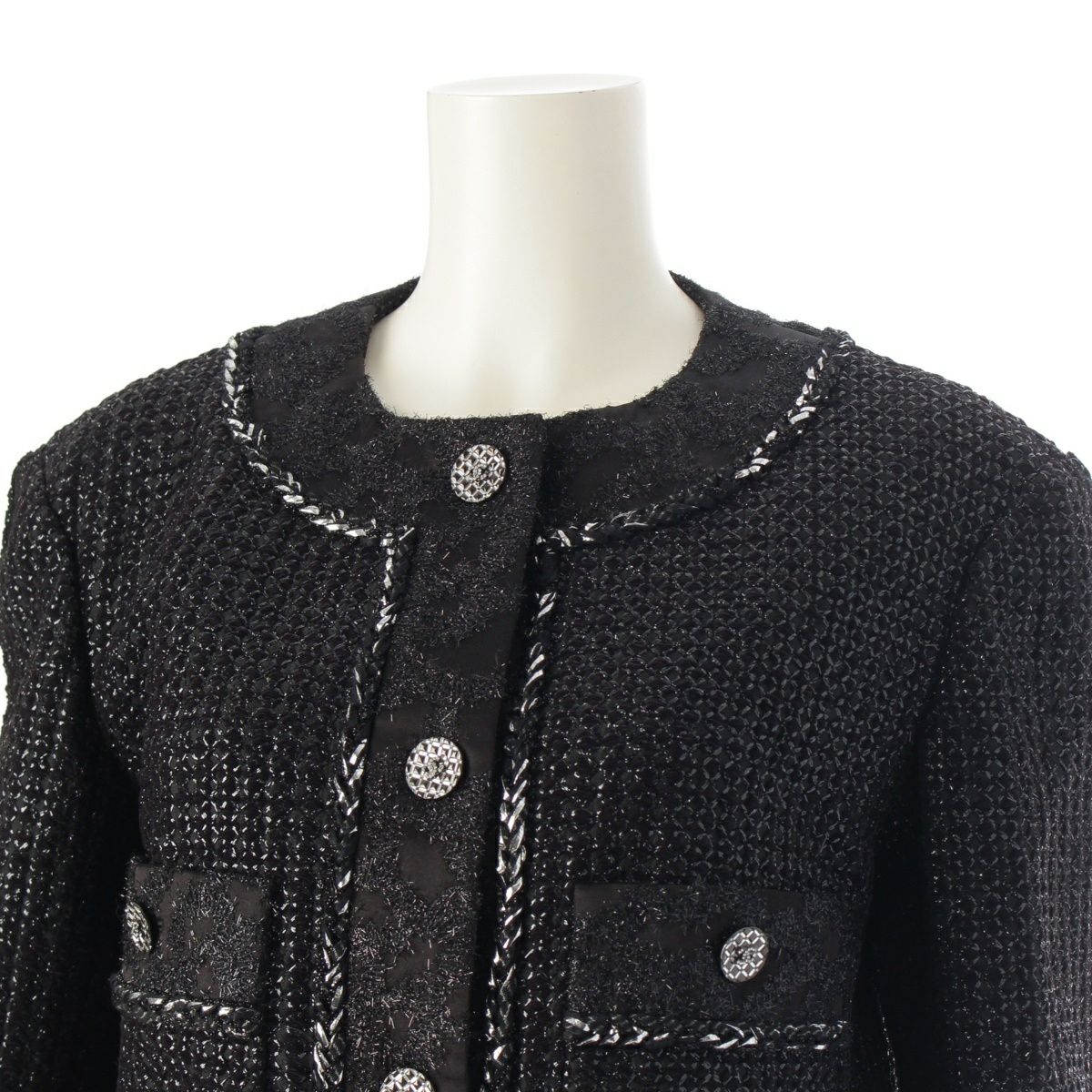 シャネル 22AW ツイード ココボタン ノーカラージャケット コート P73114 ブラック 36