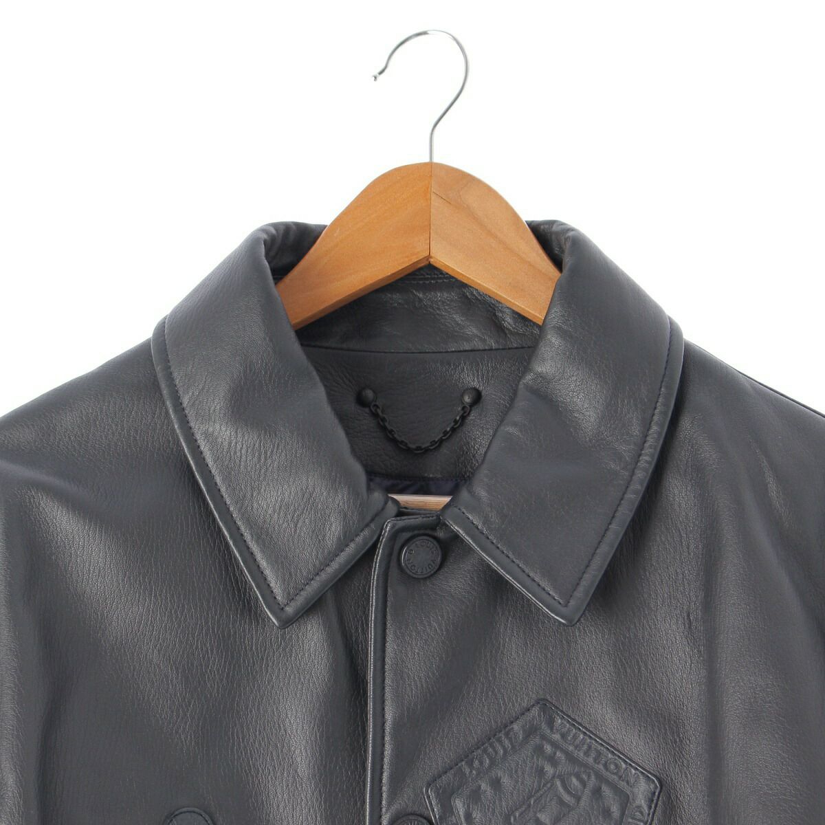 ルイヴィトン 19SS メンズ レザー ジャケット ブルゾン ロゴパッチ モノグラム ブラック 48