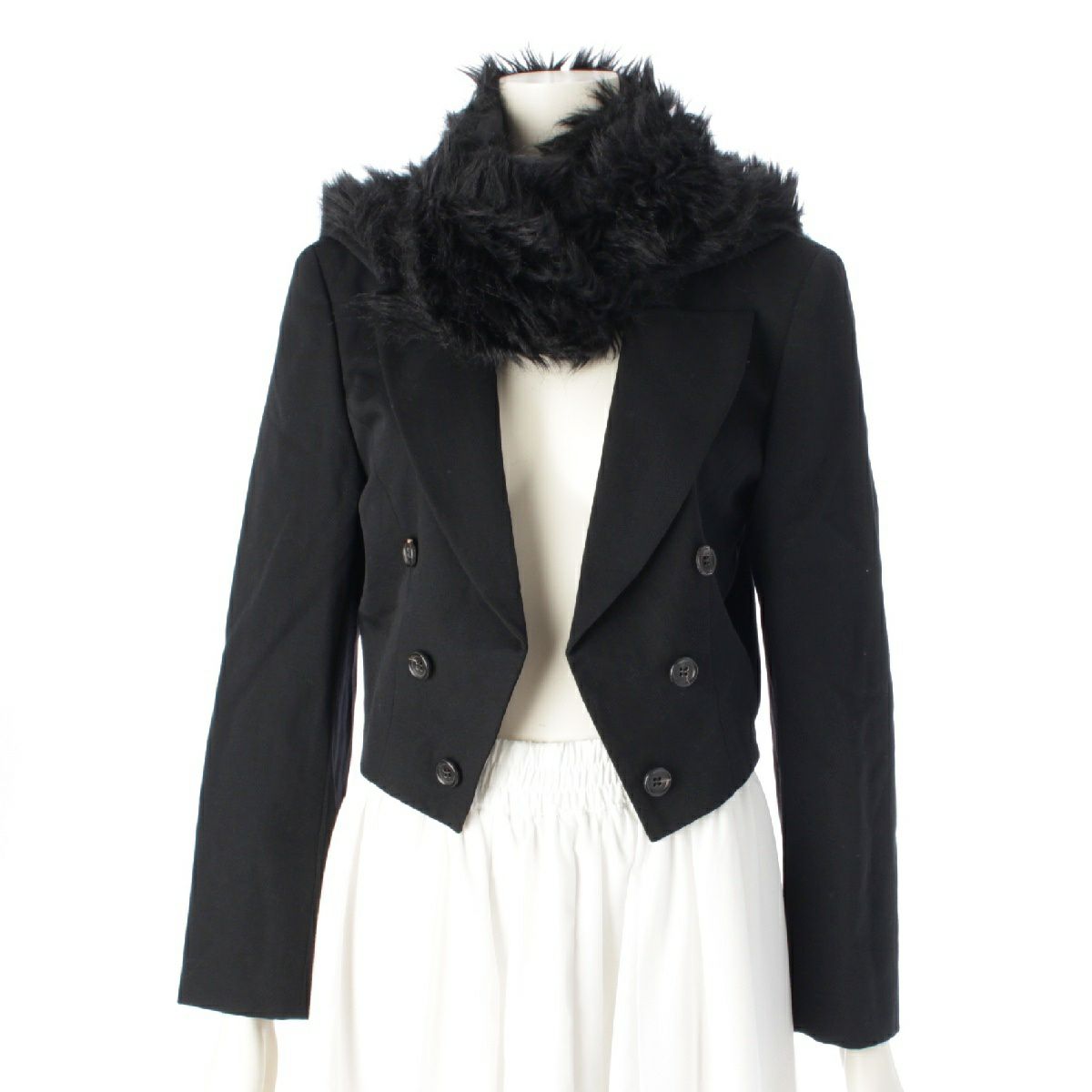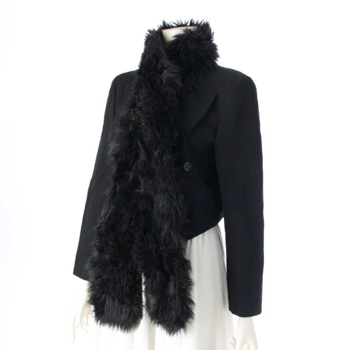 コムデギャルソン AD1989 80s ウール ヴィンテージ アクリルファーストール クロップド ジャケット GJ-05053S ブラック S
