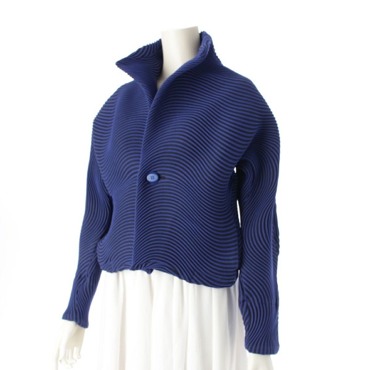 イッセイミヤケ 16年 3Dスチームプリーツ 1B スタンドネック ボーダー ジャケット トップス IM62FD540 ブルー ブラック 2