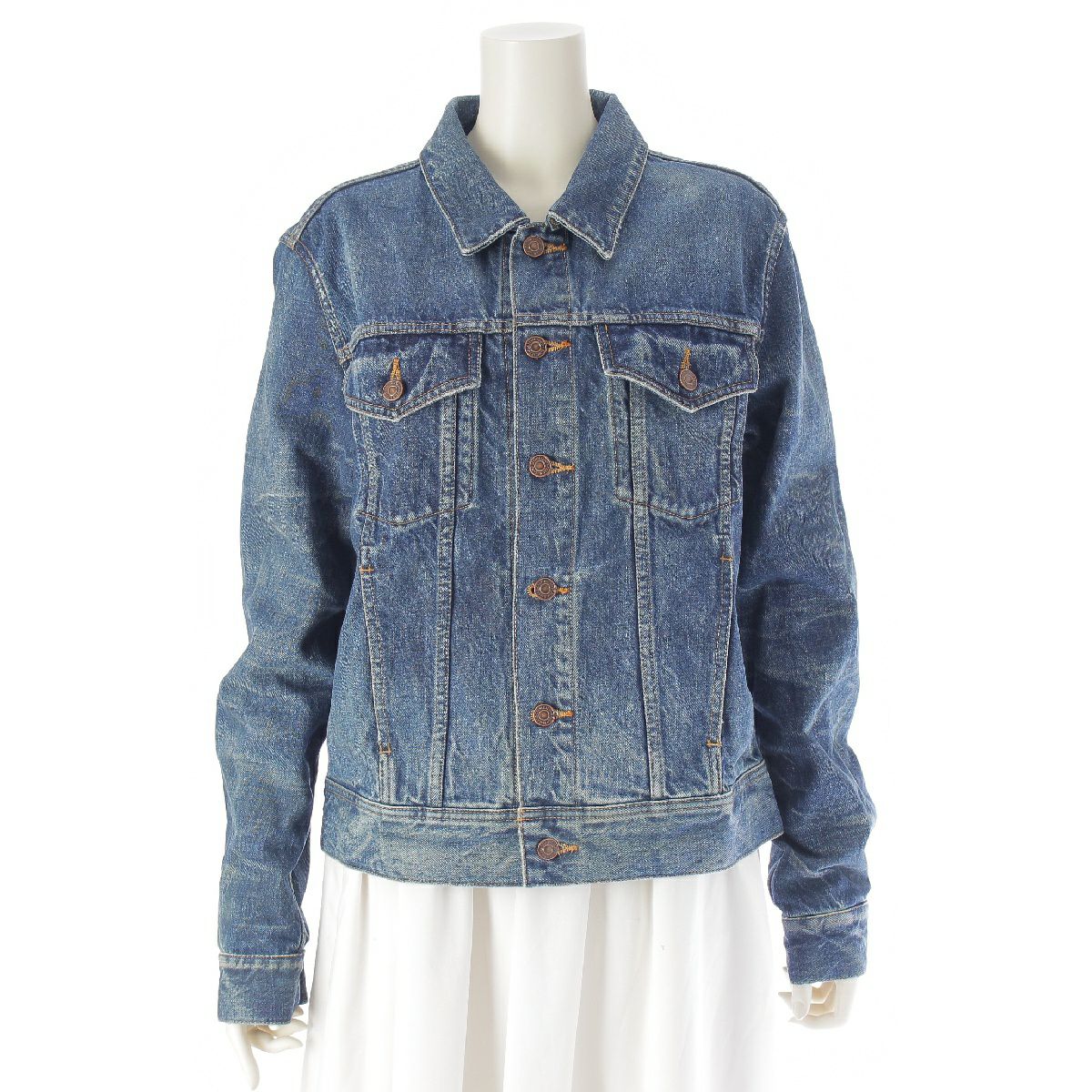 セリーヌ コットン エディスリマン 袖裏チェーン柄 ロゴボタン デニムジャケット トラッカー Gジャン アウター 2Q18990M アイスブルー S