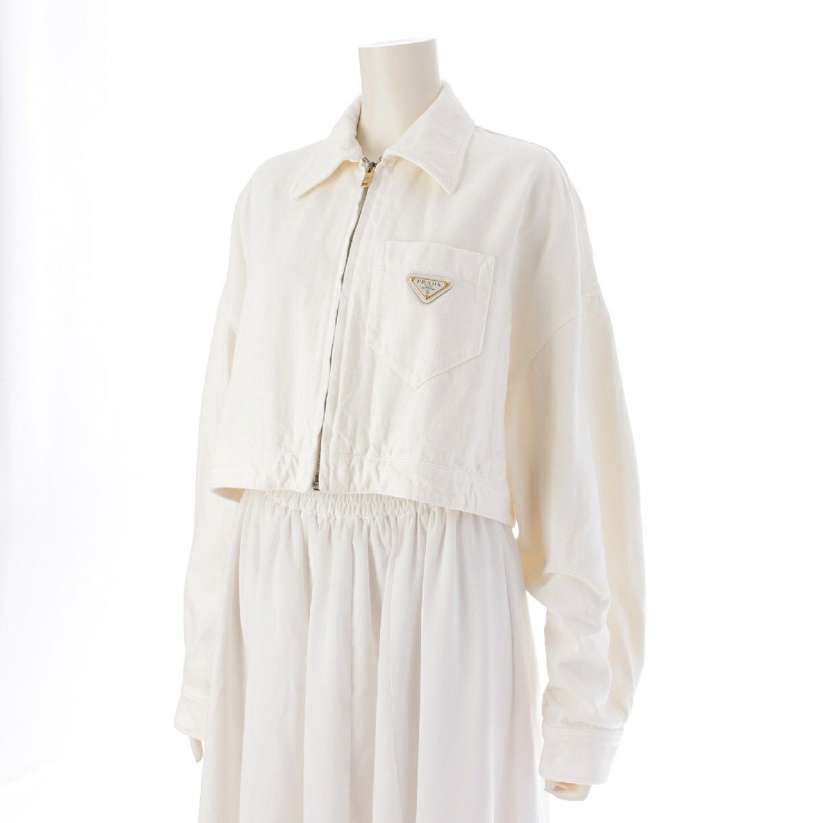 プラダ コットン トライアングルロゴ 三角プレート デニムジャケット クロップド ショート丈 トップス GFB279 ホワイト 40