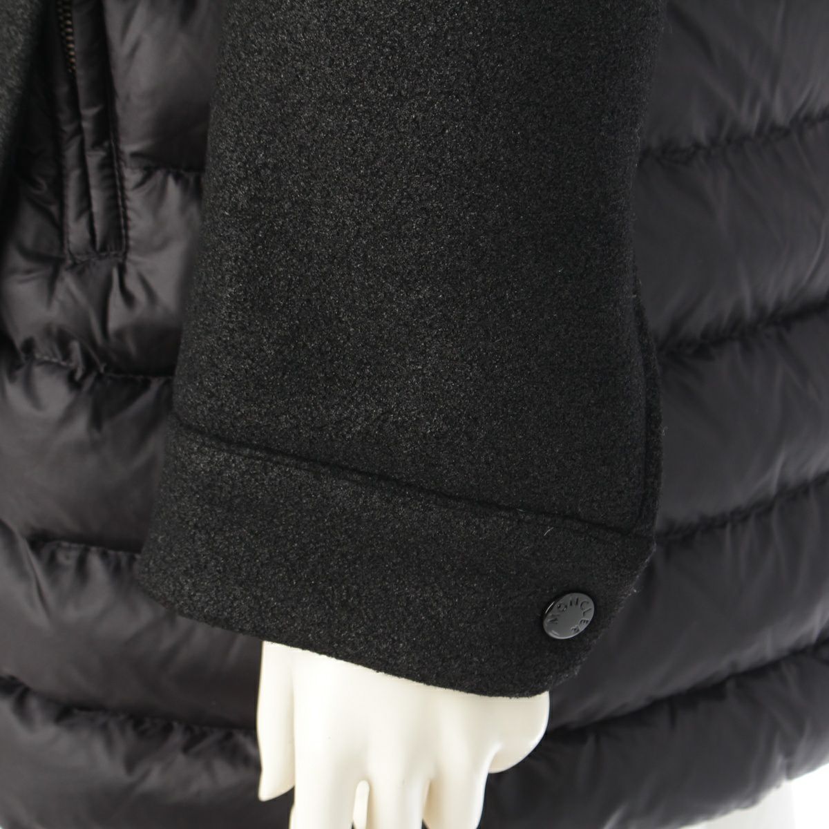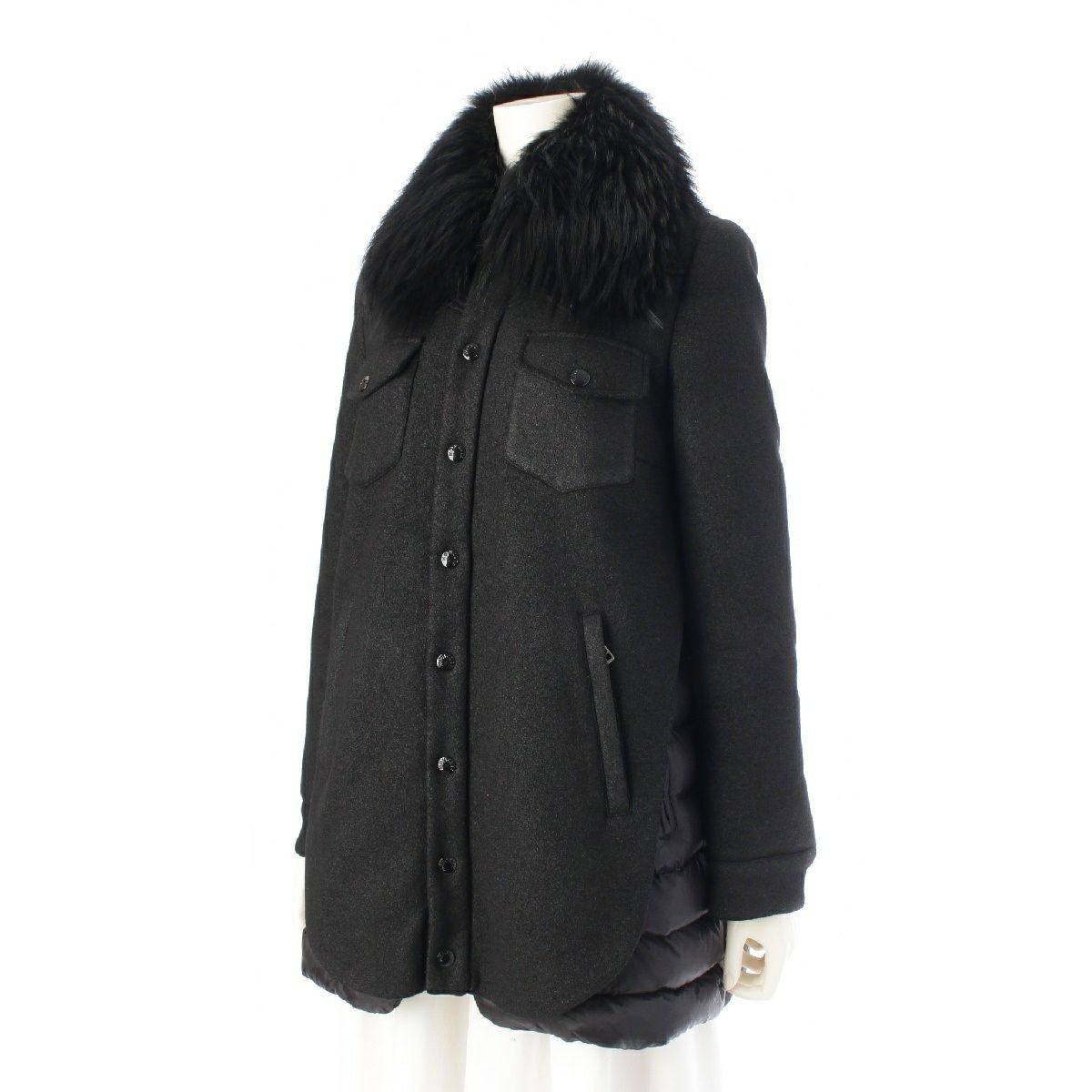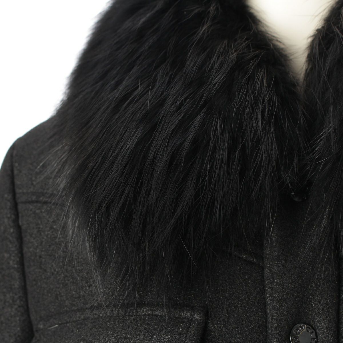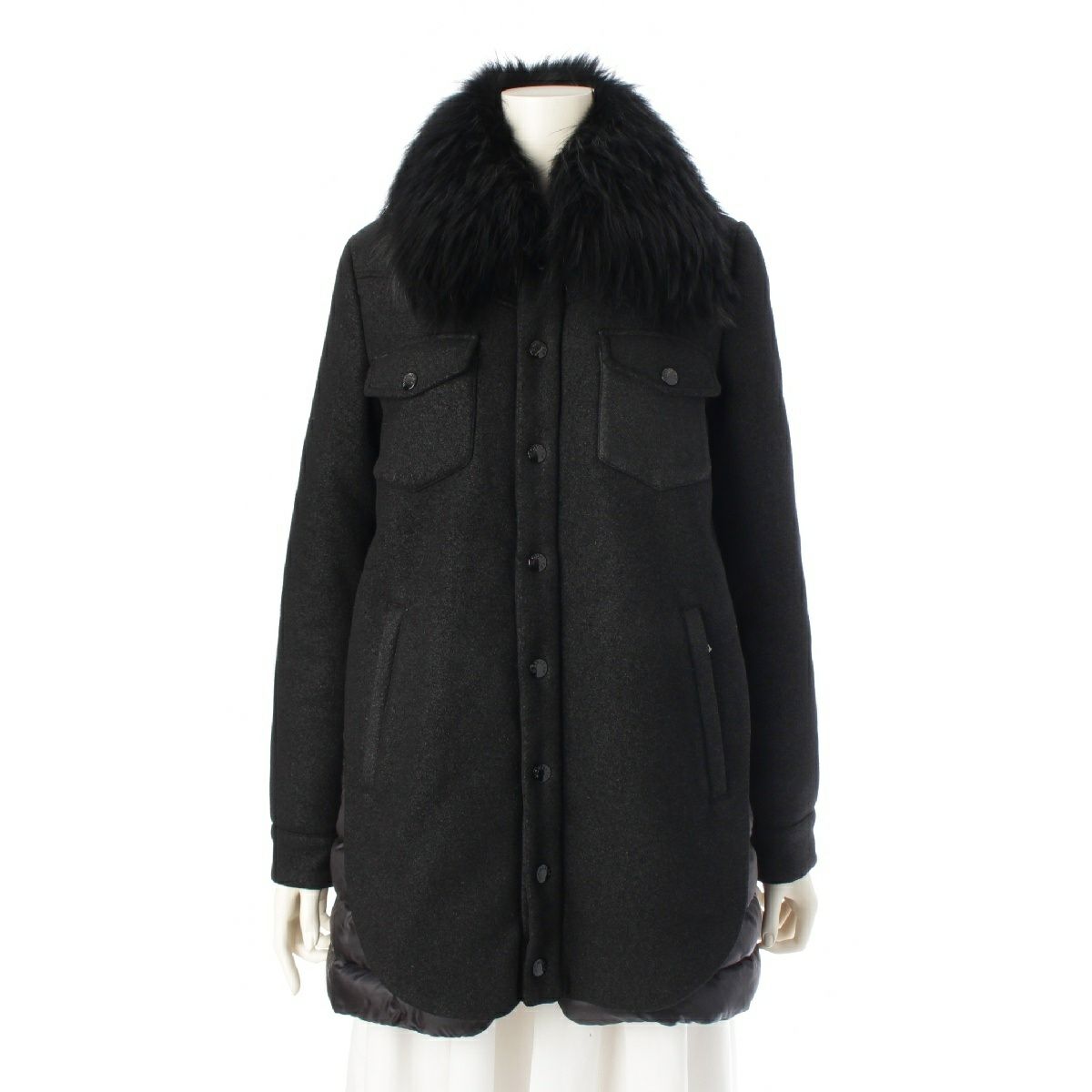 モンクレール リンドウ ウール ナイロン ファー ダウン ファー コート ダウンジャケット ブラック 0