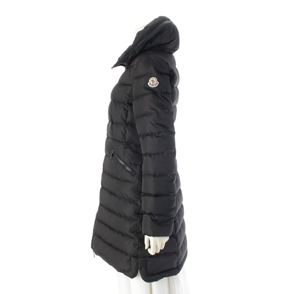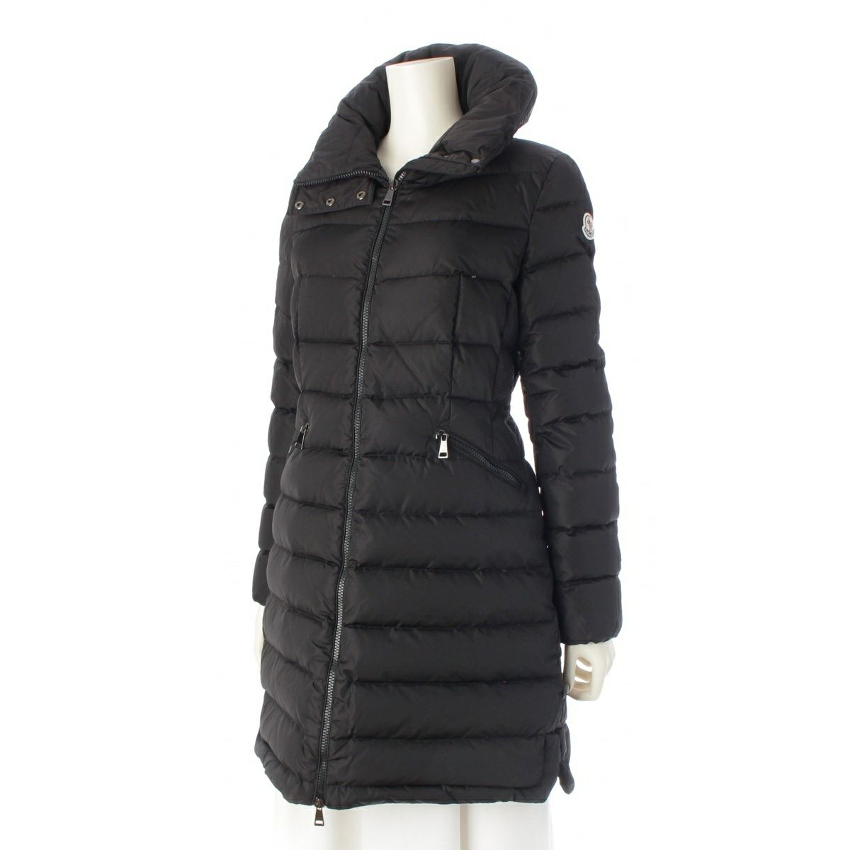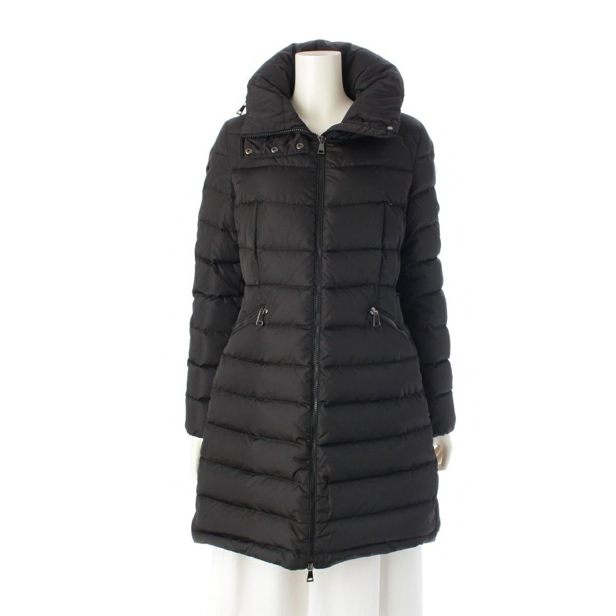 モンクレール 17年 FLAMMETTE Aライン ロング ダウンコート アウター ブラック 0