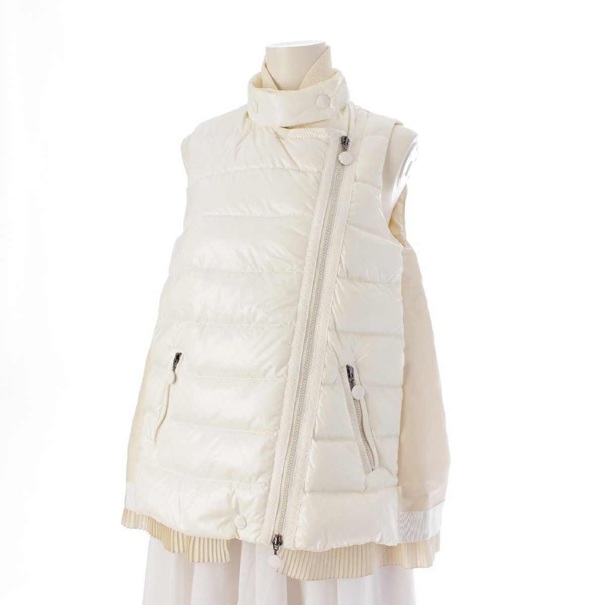 モンクレール JANE GILET 異素材ドッキング ライダース ダウンベスト ジャケット アウター ホワイト 00