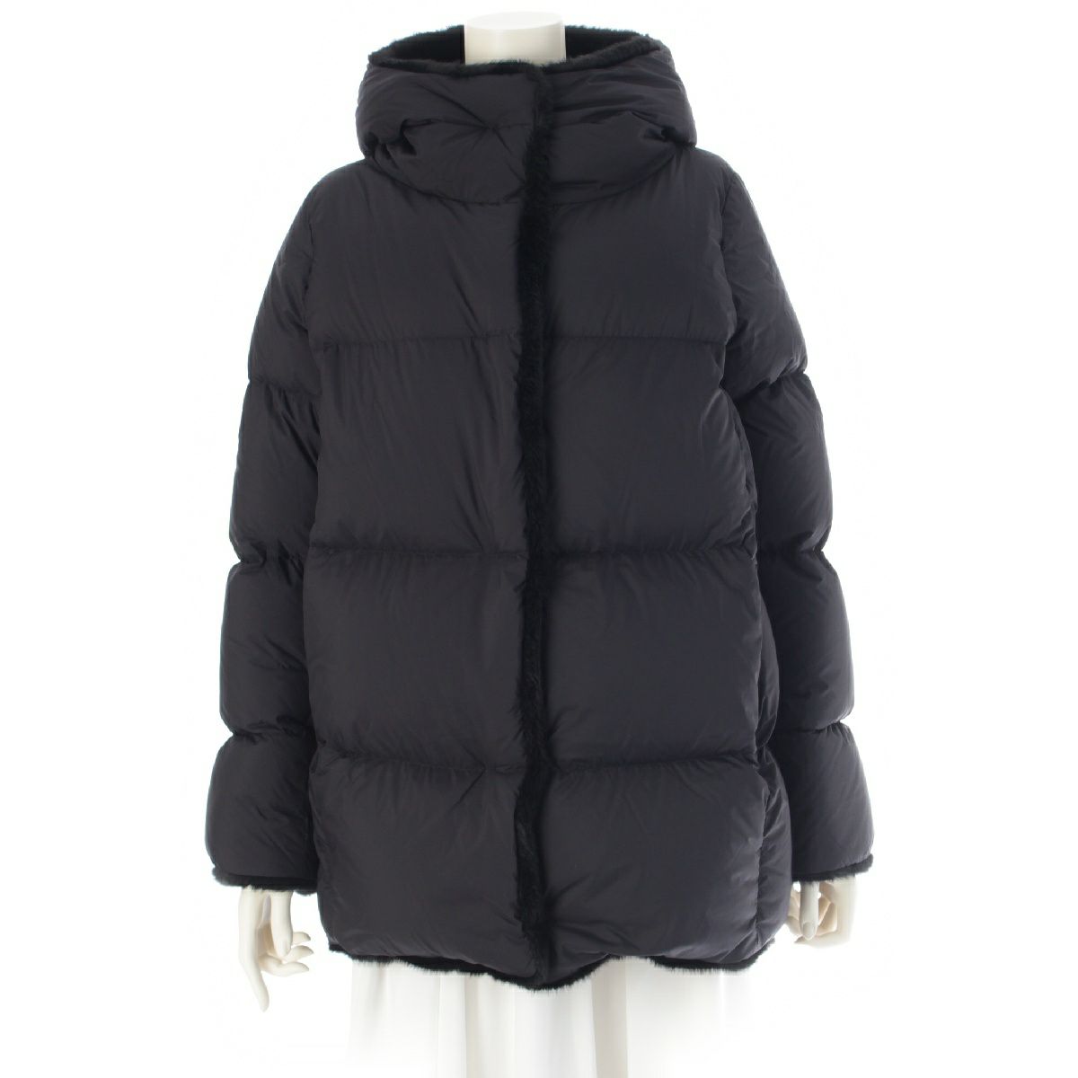ヘルノ Globe Lab サステナブルガーメント ナイロン フェイクファー ダウンジャケット コート アウター PI001496D-12456-9300 ブラック 38
