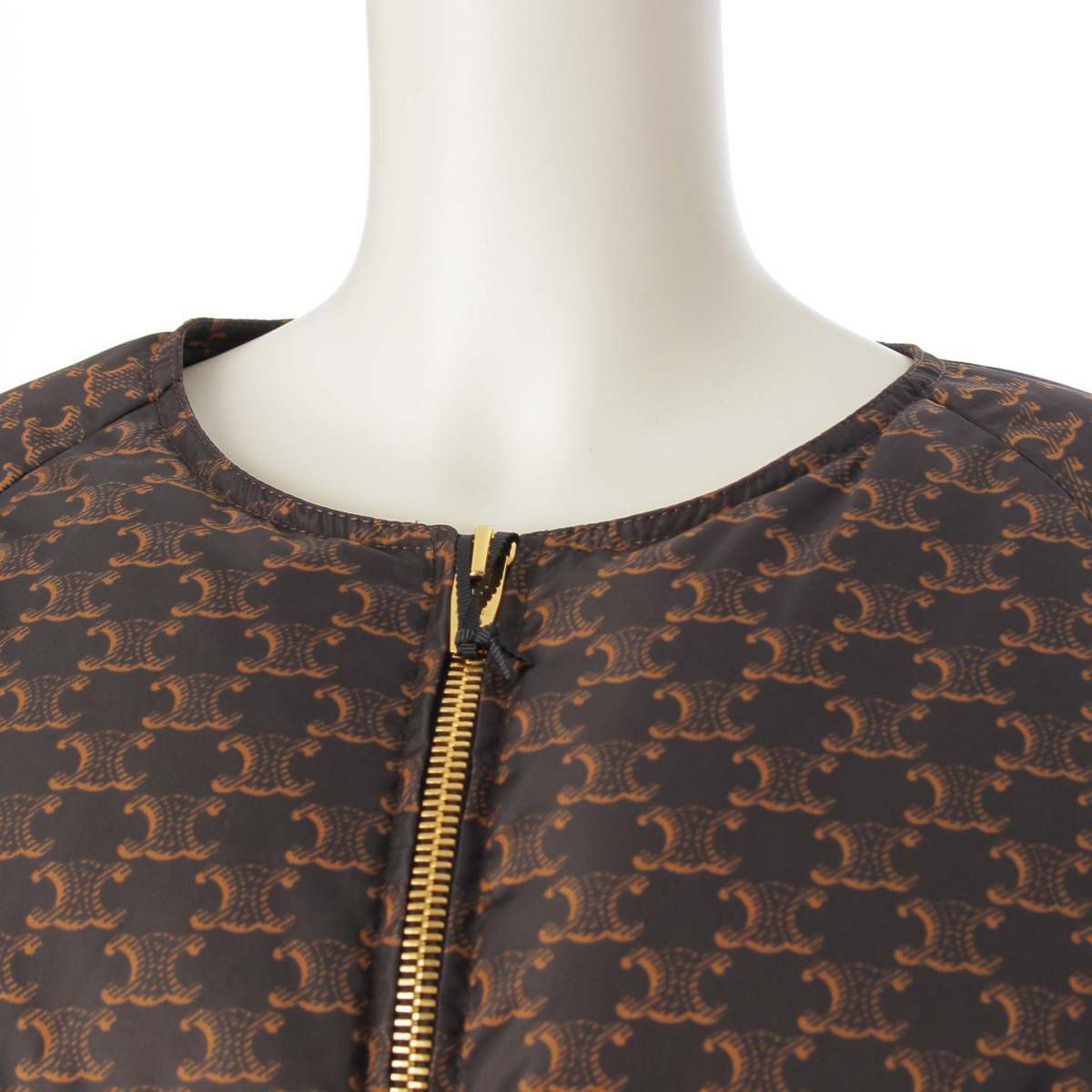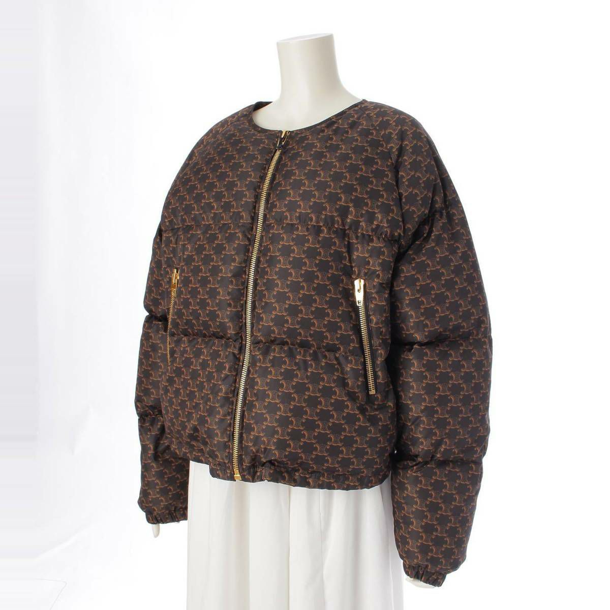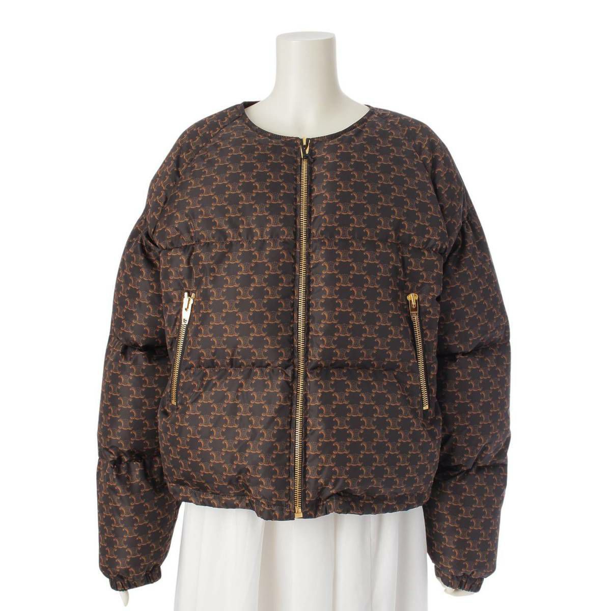 セリーヌ トリオンフ マカダム ノーカラー ボンバー ダウンジャケット 2W782344N ブラウン 38
