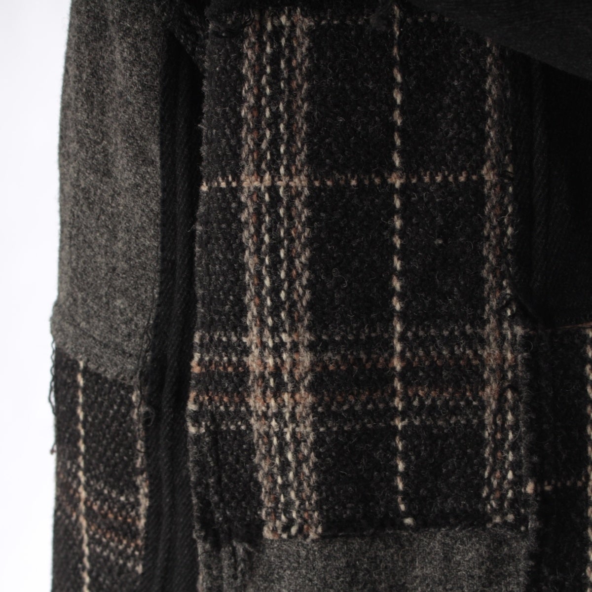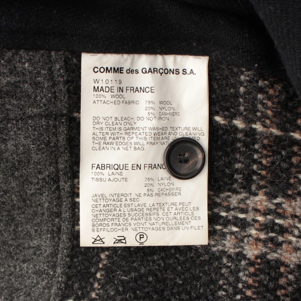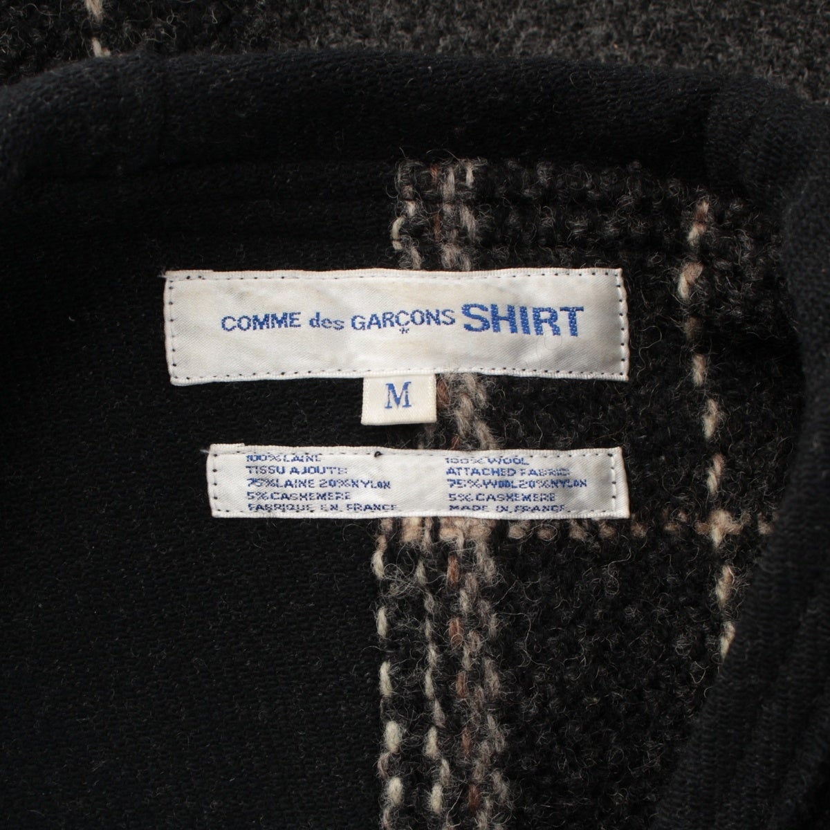 コムデギャルソンシャツ ウール カシミヤ パッチワーク フーテッド ダッフルコート W10119 グレー M