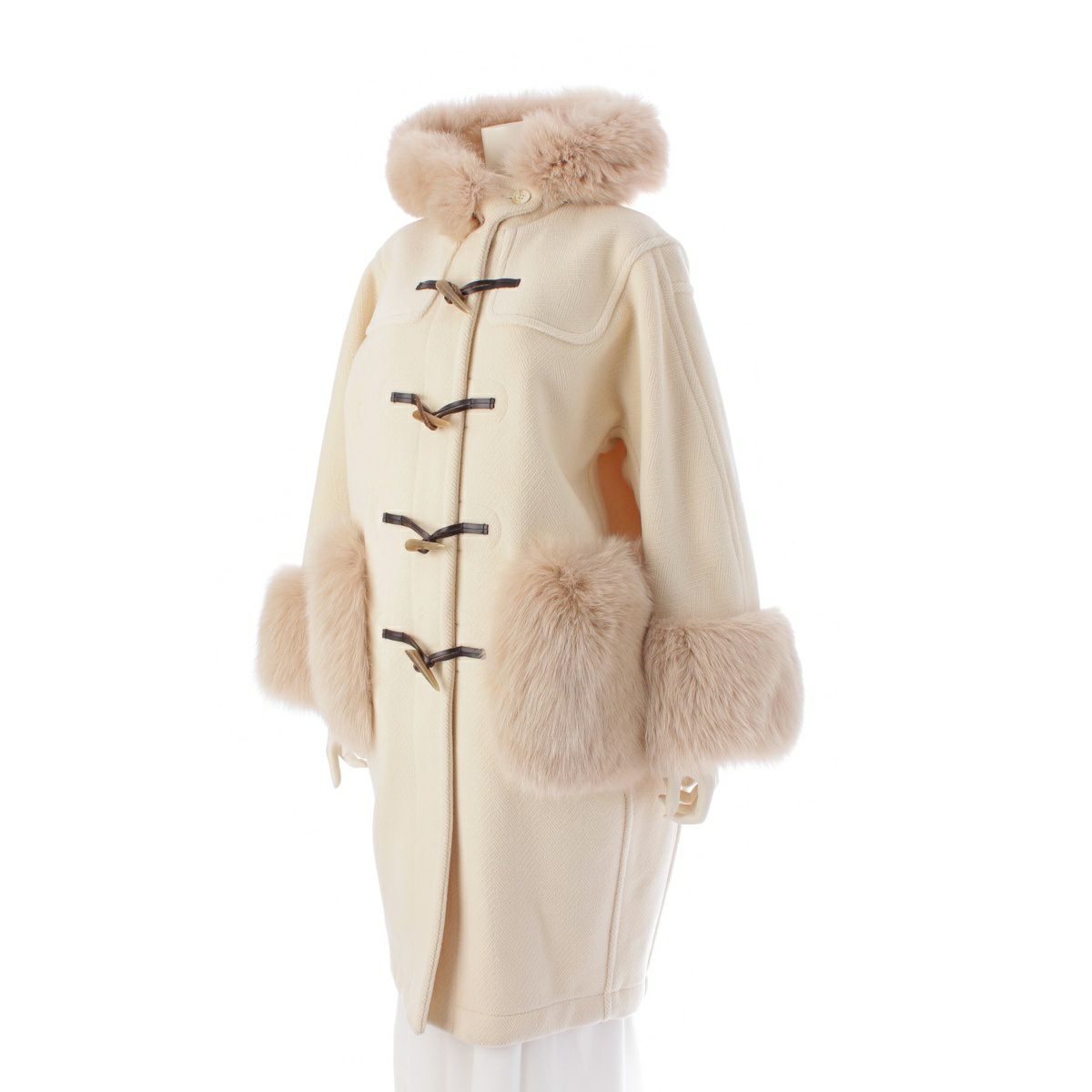 ドゥロワー 17AW ウール フォックスファー フード ロング ダッフルコート アウター 6525-299-0591 アイボリー 38