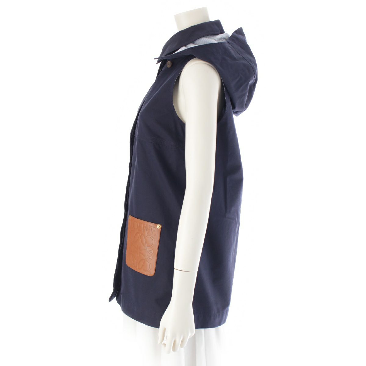 ロエベ 21SS アナグラムレザーパッチ 比翼ボタン 2way ポンチョ ベスト ジレ ケープ コート ジャケット S540Y02W02 ネイビー 34