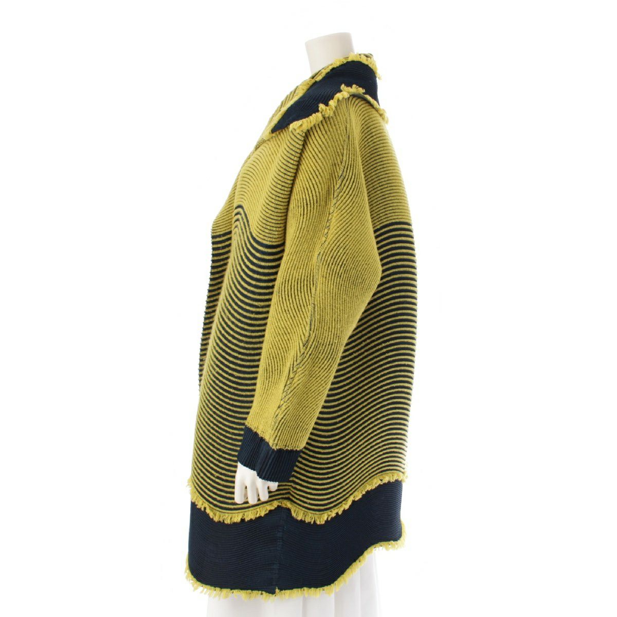 イッセイミヤケ 宮前義之 Yoshiyuki Miyamae 18AW ウール混 3Dスチーム 波プリーツ フリンジ ポンチョ ジャケット コート トップス IM84FD543 イエロー×ダークグリーン 2