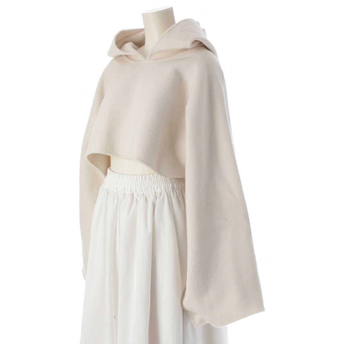 CONTE コンテ 24AW 辺見エミリ ウール フーデッドリバーケープ ダブルフェイス ポンチョ クロップド丈 8525-104-0008 オフホワイト