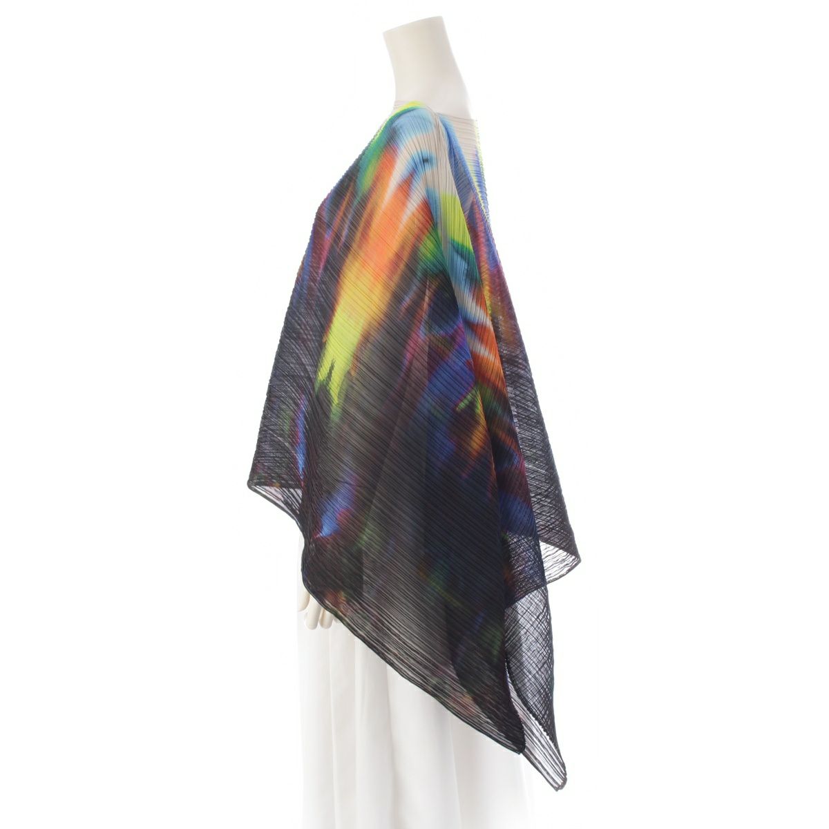 プリーツプリーズ イッセイミヤケ レインボー グラフィック ポンチョ ケープ PP54-AD321 マルチカラー