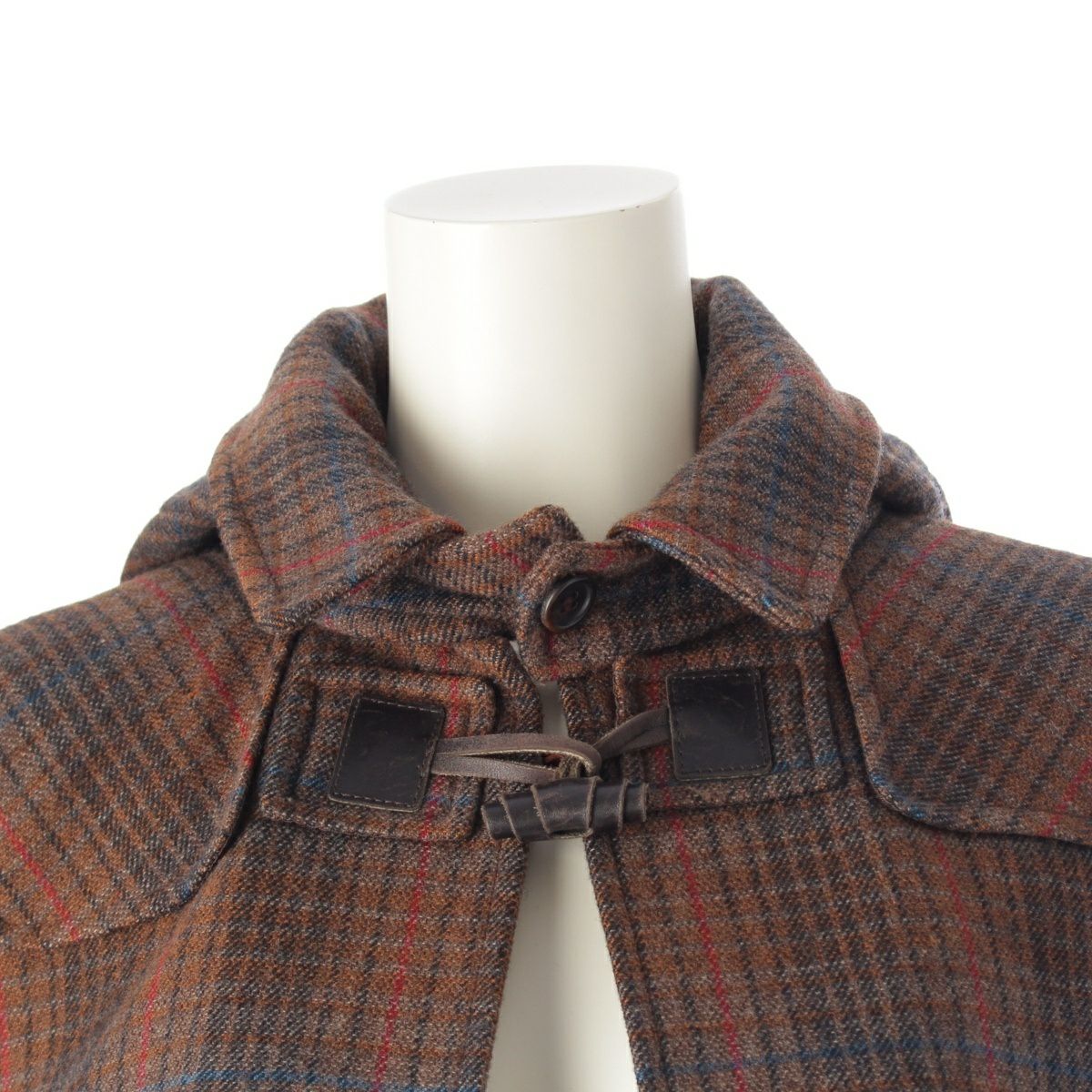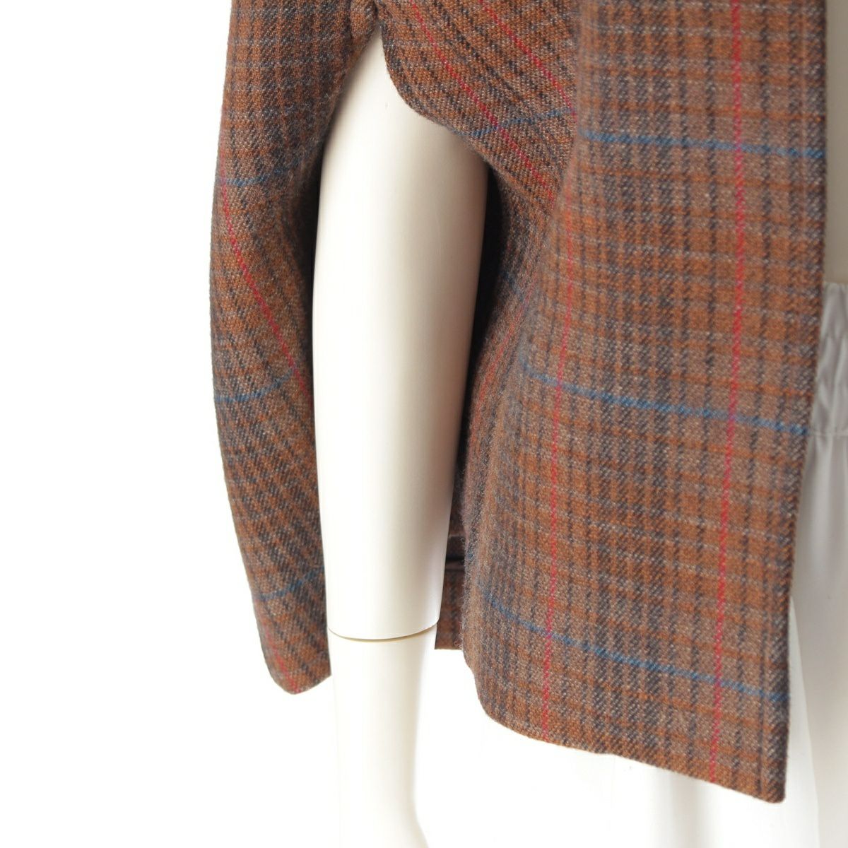 ミュウミュウ ウール チェック柄 フード付き ケープ ポンチョ コート ブラウン 38