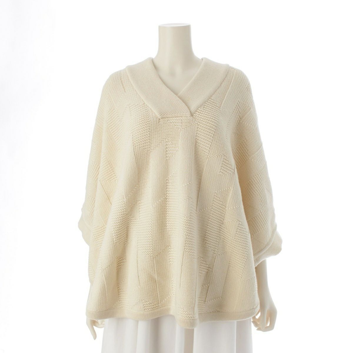 エルメス 23AW ウール ニット セーター Hモチーフ ポンチョ 3H2602D4 アイボリー ホワイト 34