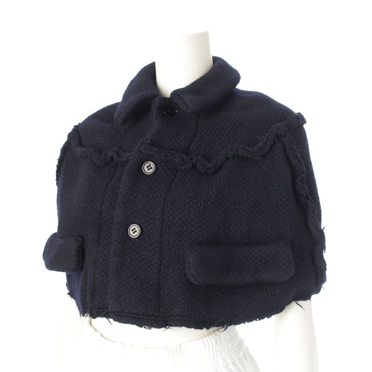 ローブドシャンブルコムデギャルソン AD2002 ウール ショート丈 ポンチョ ケープ コート アウター RG-J025 ネイビー M