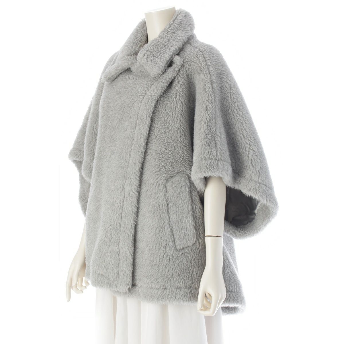 マックスマーラ ウール アルパカ シルク TEBE2 テディベア ケープ ポンチョ ライトグレー系