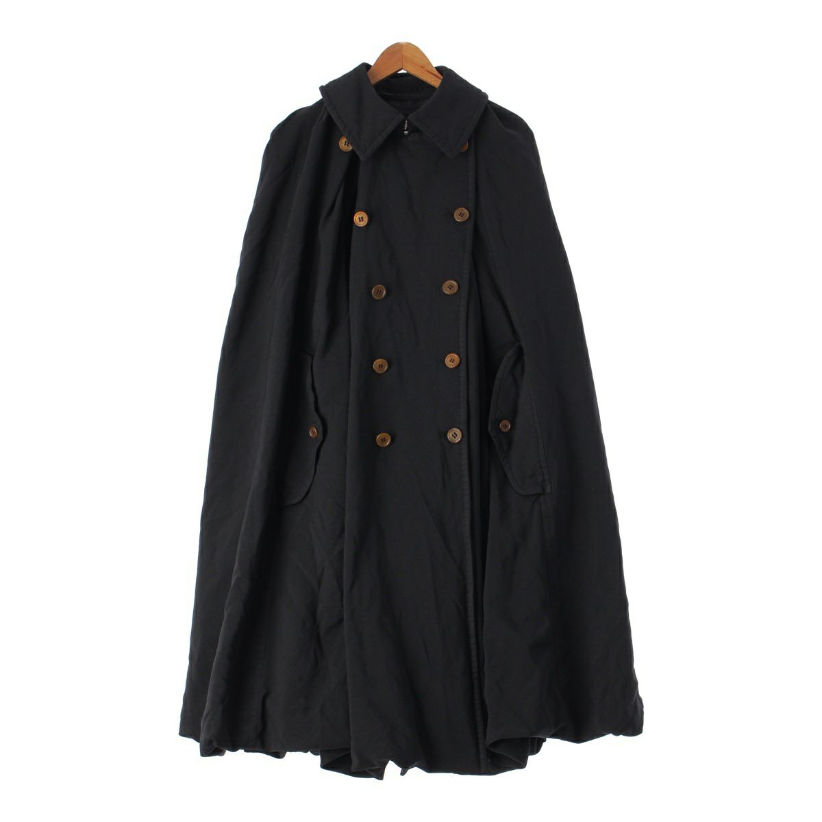 コムデギャルソン 20年 ステンカラー ダブルブレスト ロング ポンチョ コート アウター GF-C003 ブラック XS
