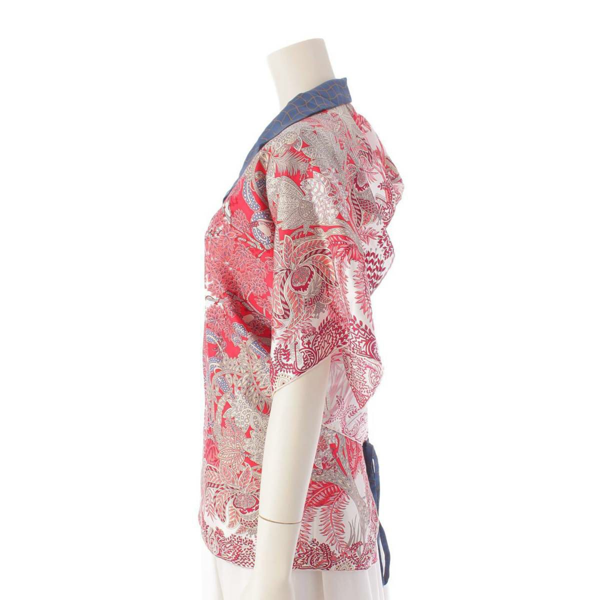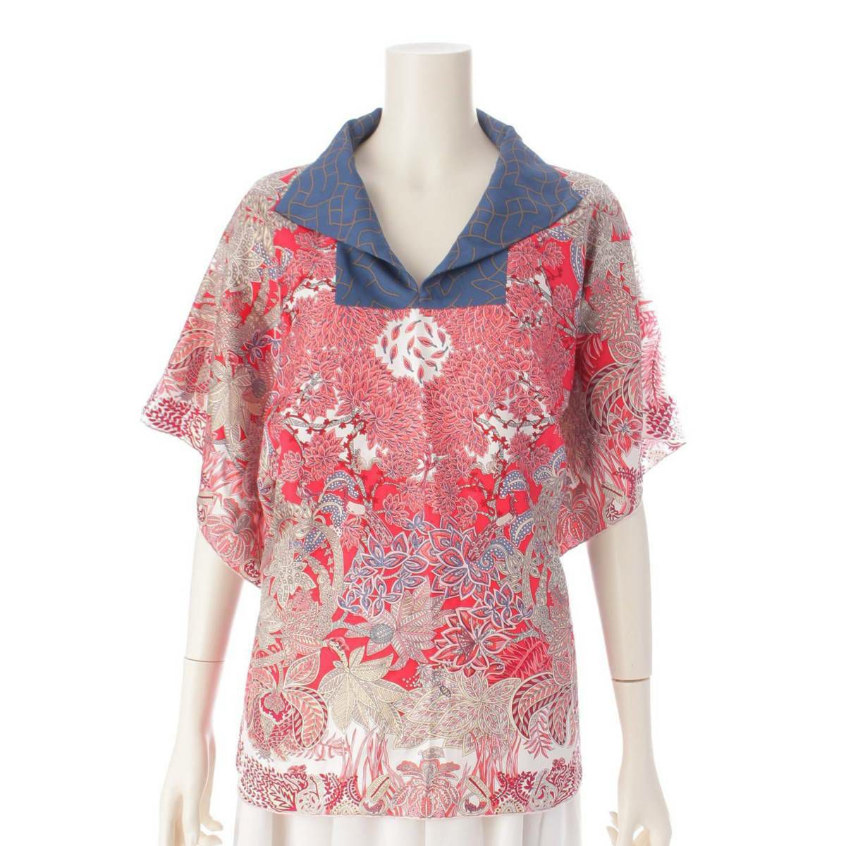エルメス 花柄 フラワー 総柄 シルク ポンチョ バックオープン シャツ トップス レッド