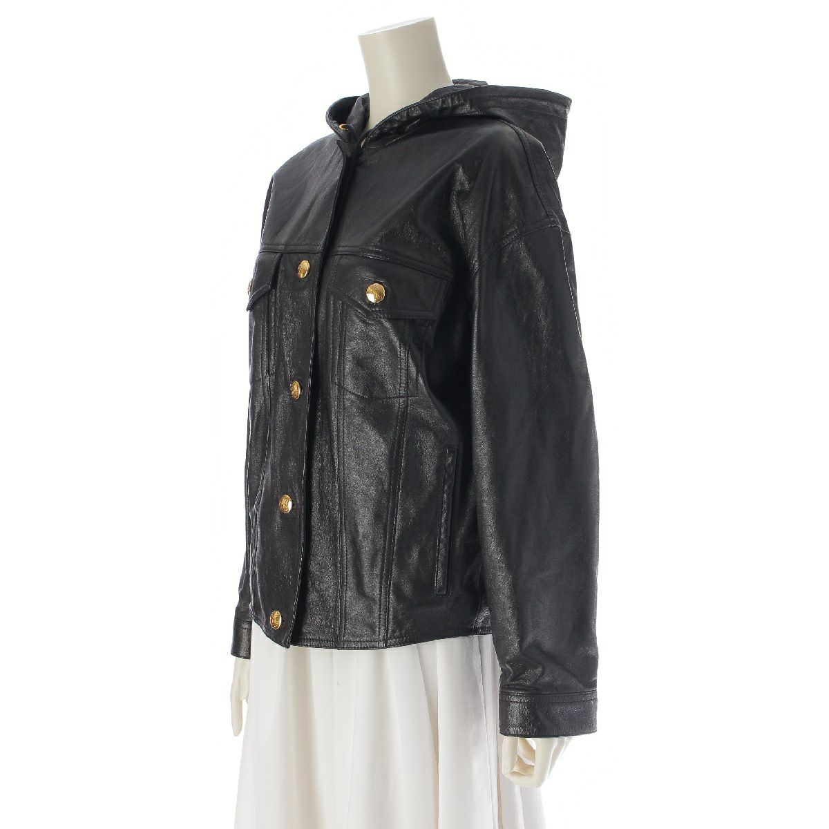 セリーヌ ラムレザー トリオンフボタン 金ボタン フード トラッカー ライダースジャケット 2EC01303P ブラック 34
