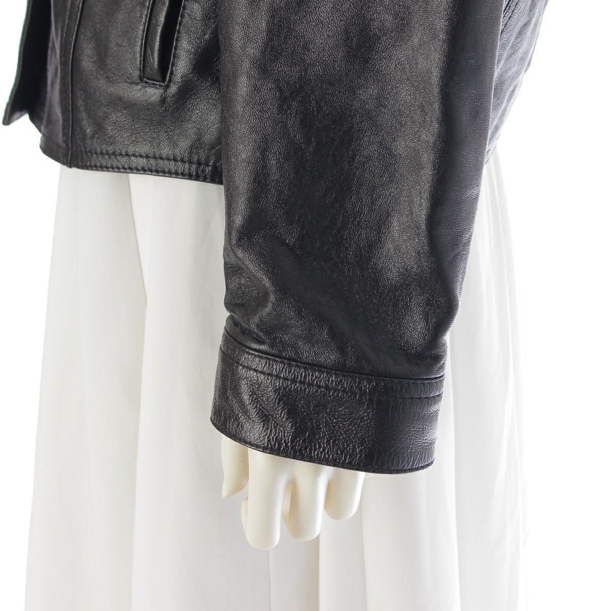 ダメージ箇所: ボタンに傷、レザー地全体にシワ、ハンガーに欠け、