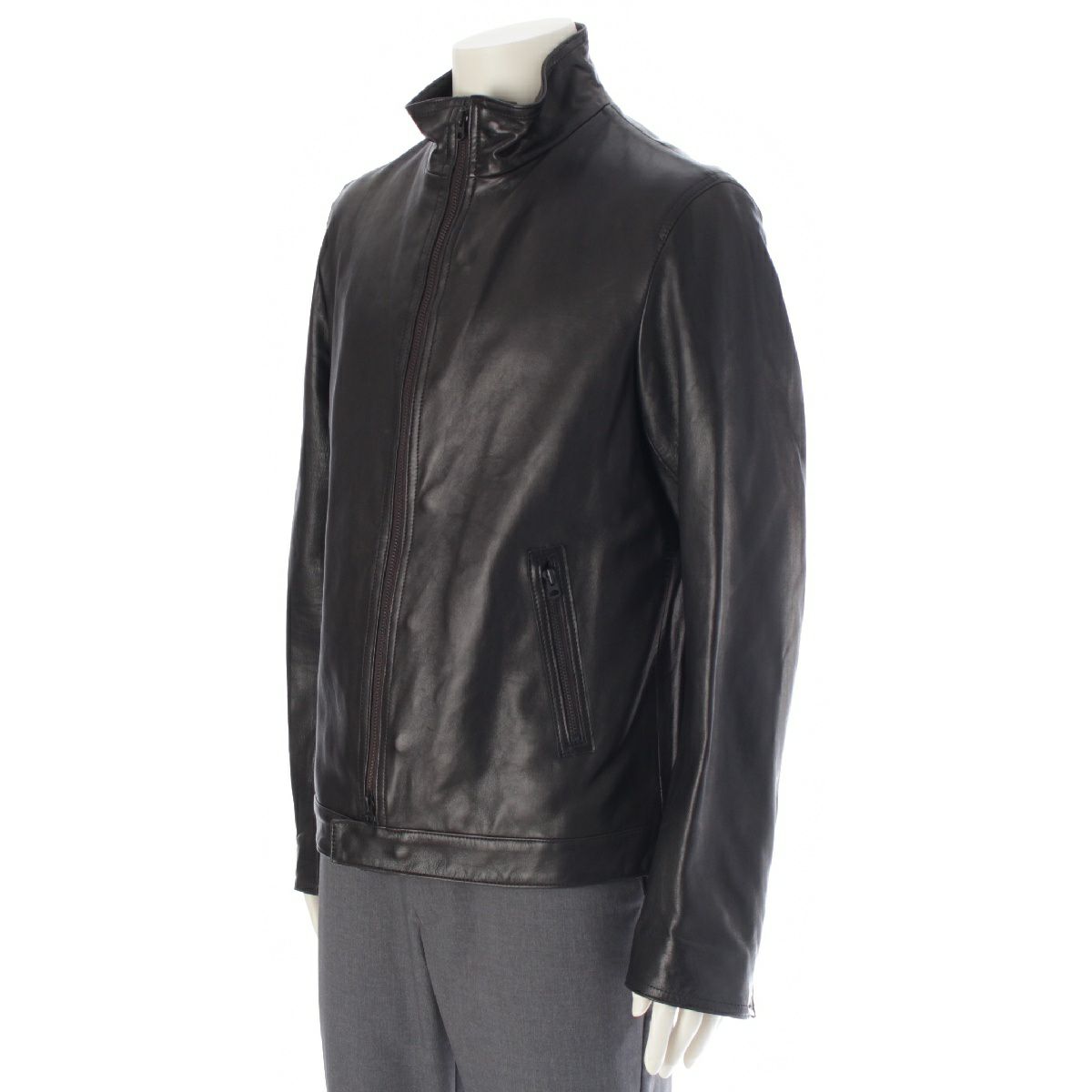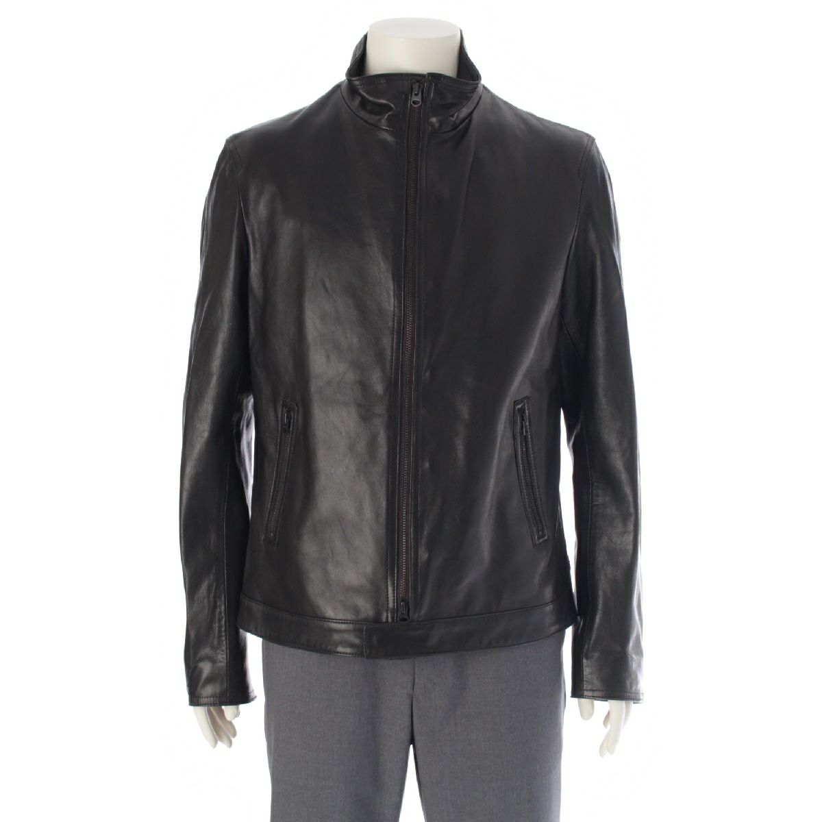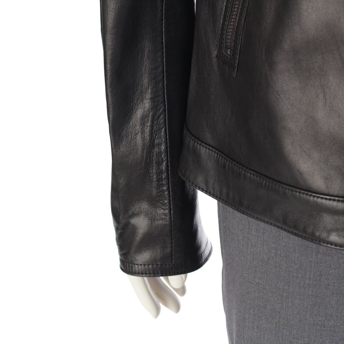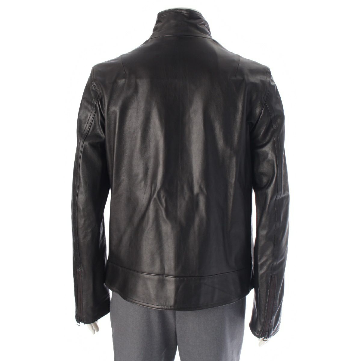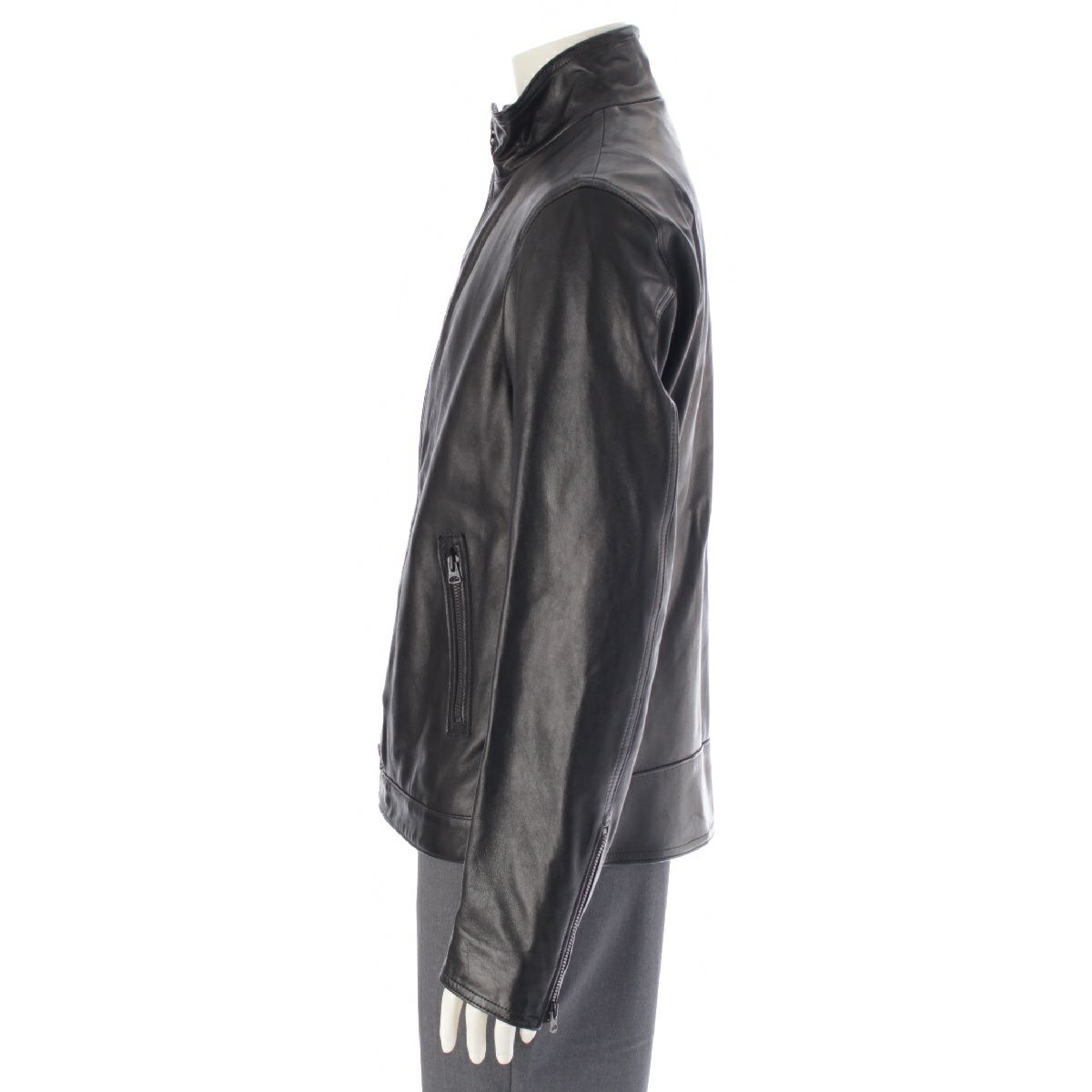 ヨウジヤマモトプールオム 14SS ラムレザー ノーカラー シングル ライダースジャケット アウター HG-Y08-700 ブラック 3