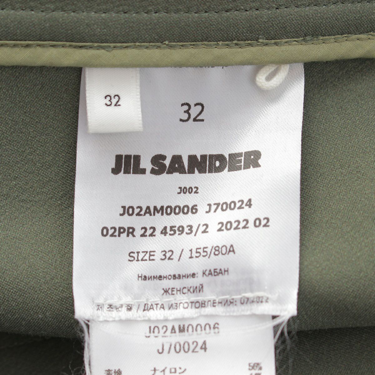 ジルサンダー 22AW ウール パッチポケット ベルテッド コート アウター J02AM0006 グリーン 32