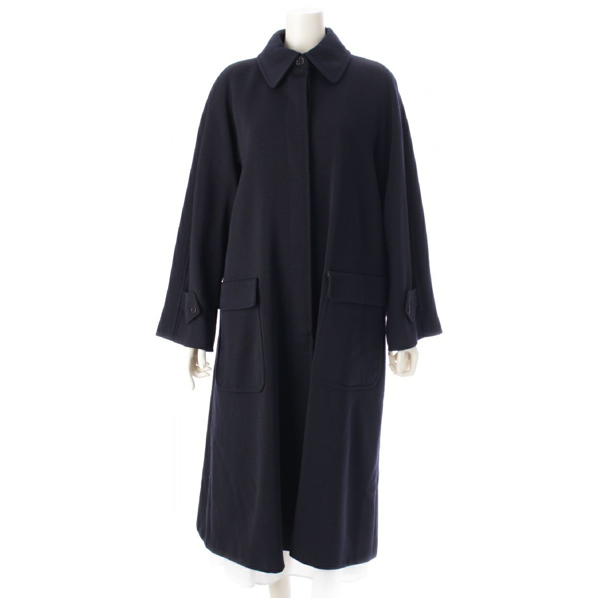 マックスマーラ ウール 白タグ ロング ステンカラーコート アウター ネイビー 40