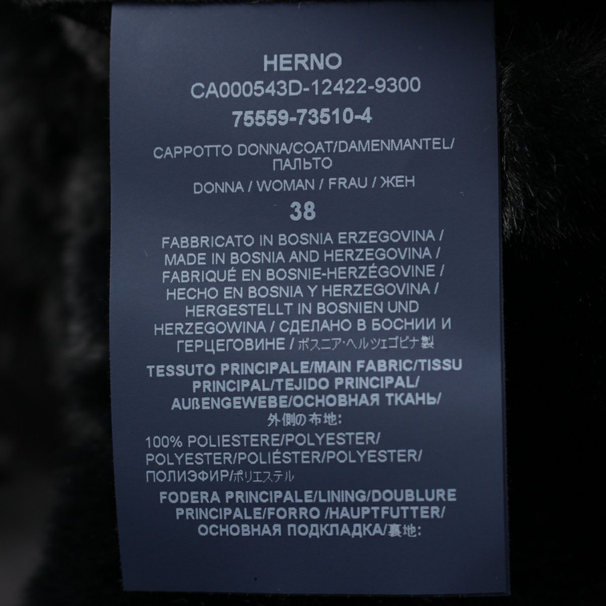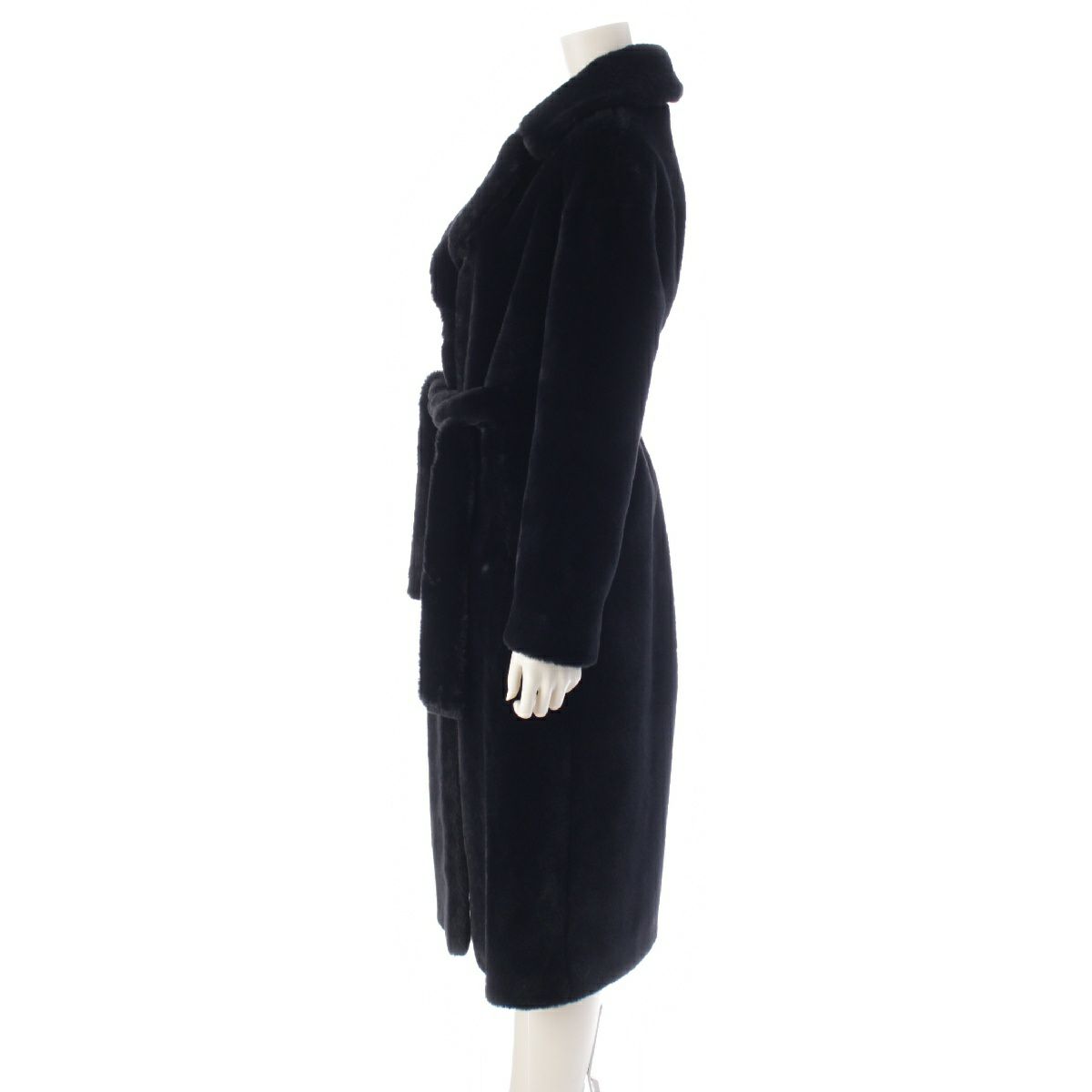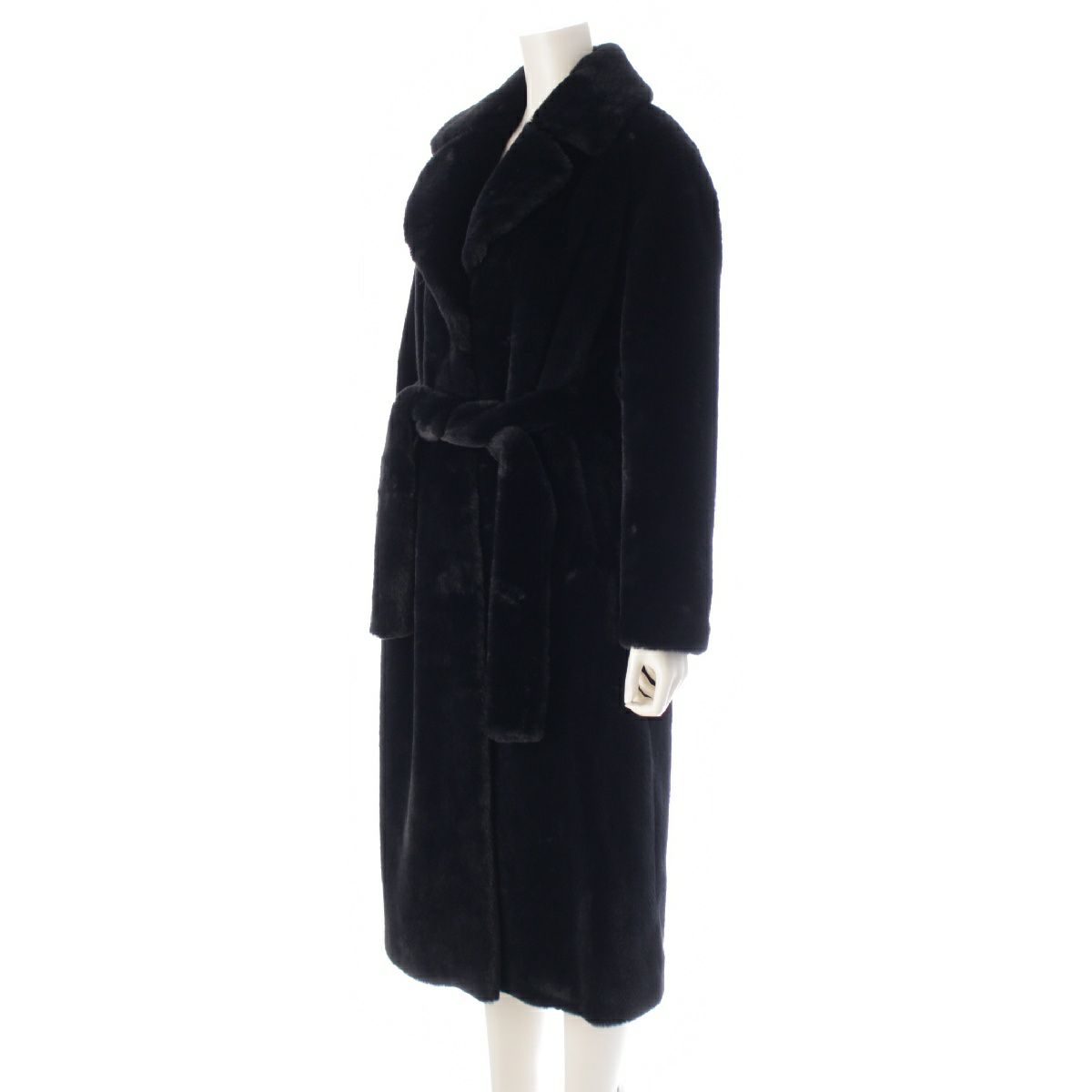 ヘルノ 24年 エコファー 襟/ベルト付 ロング ガウン コート アウター CA0409D124229300 ブラック 38