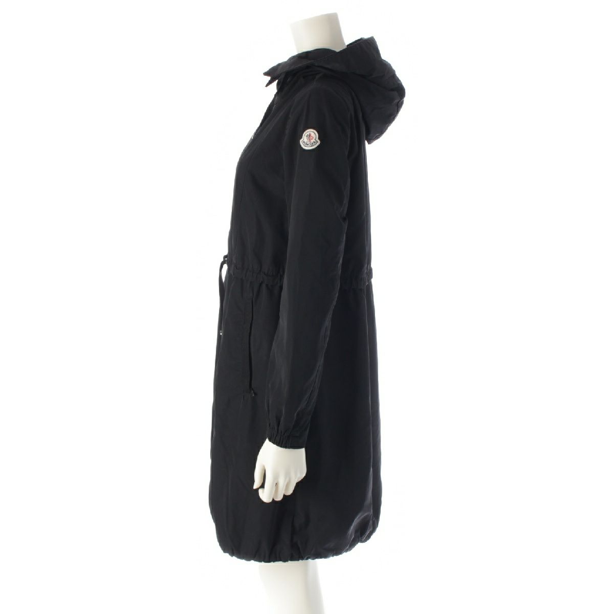 モンクレール 16年 TUILE ナイロン スプリング フーディー ウエストギャザー コート アウター ブラック 00