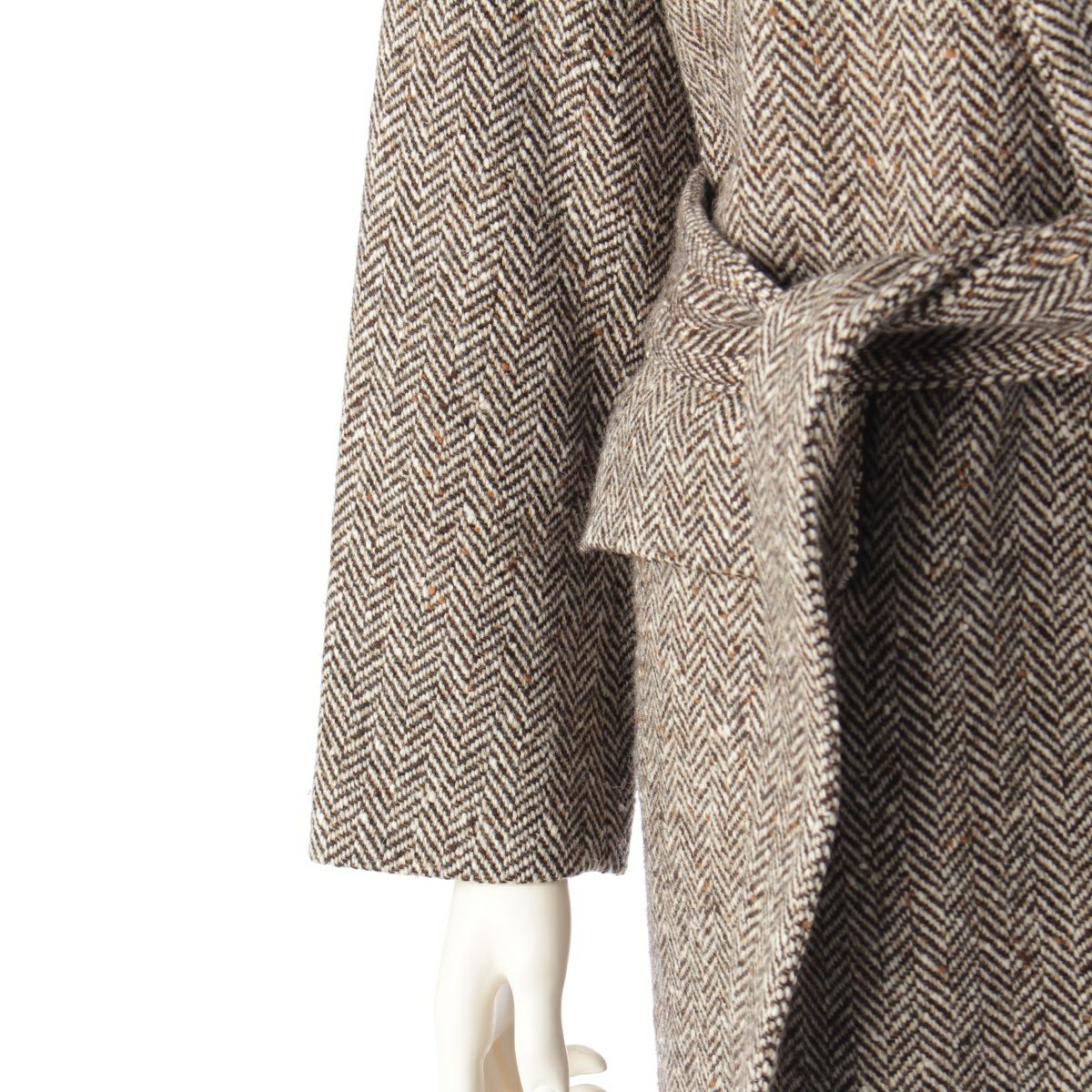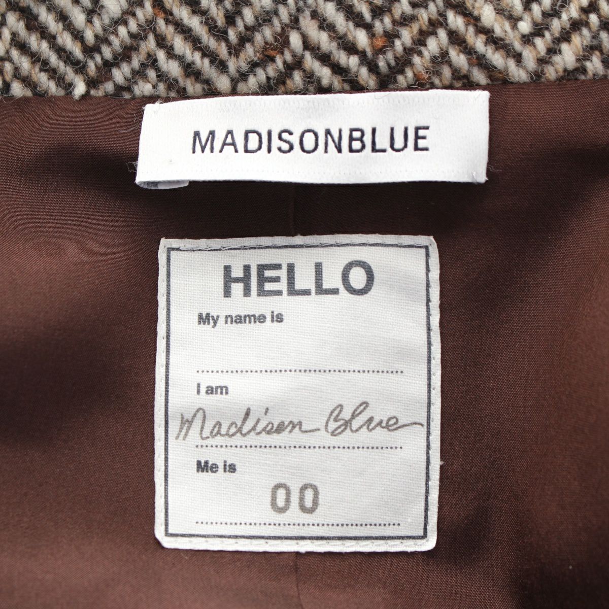 マディソンブルー 18AW ウール×ナイロン ヘリンボーン チェスター コート アウター MB184-2023 オフホワイト ブラウン 00 XS