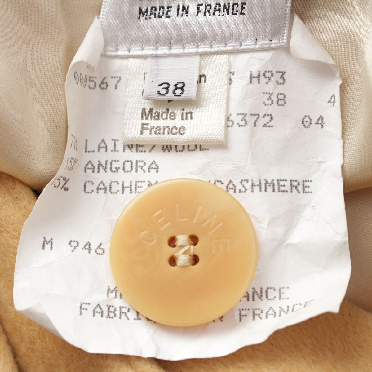 セリーヌ ヴィンテージ ウール カシミヤ混 ベルテッド ロング コート トリオンフ ロゴ フード ベルト付き キャメル 38