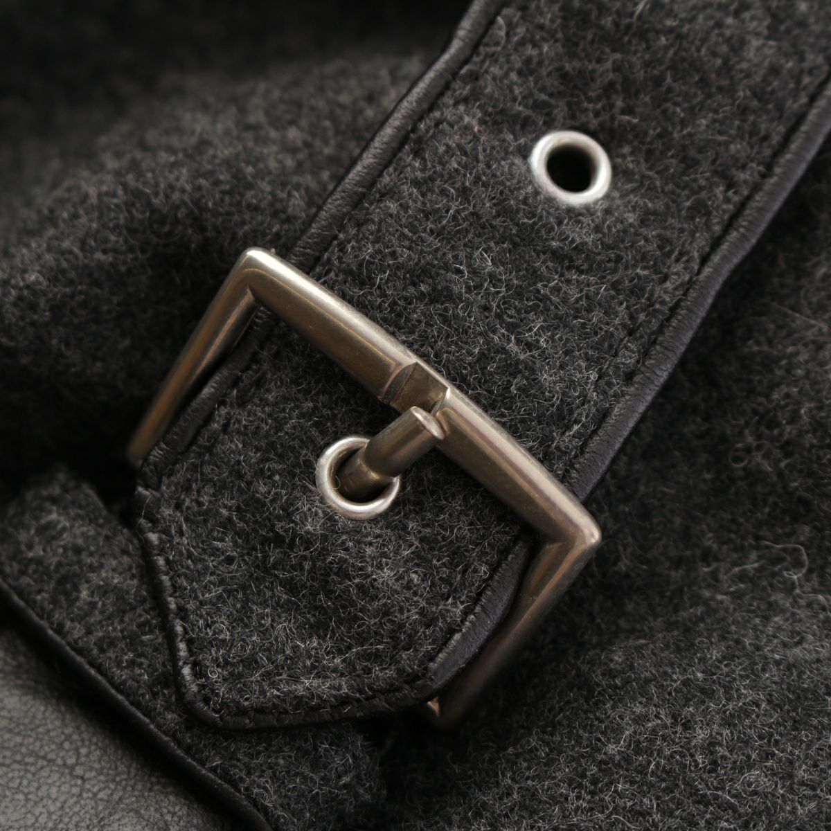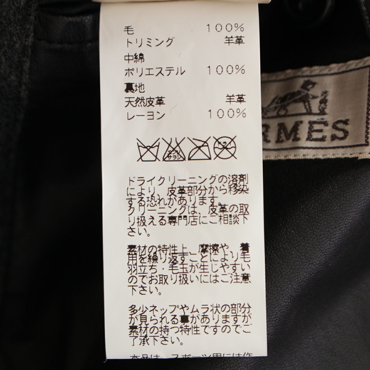 エルメス ウール レザー 比翼 袖口ベルト ステンカラーコート アウター グレー 54