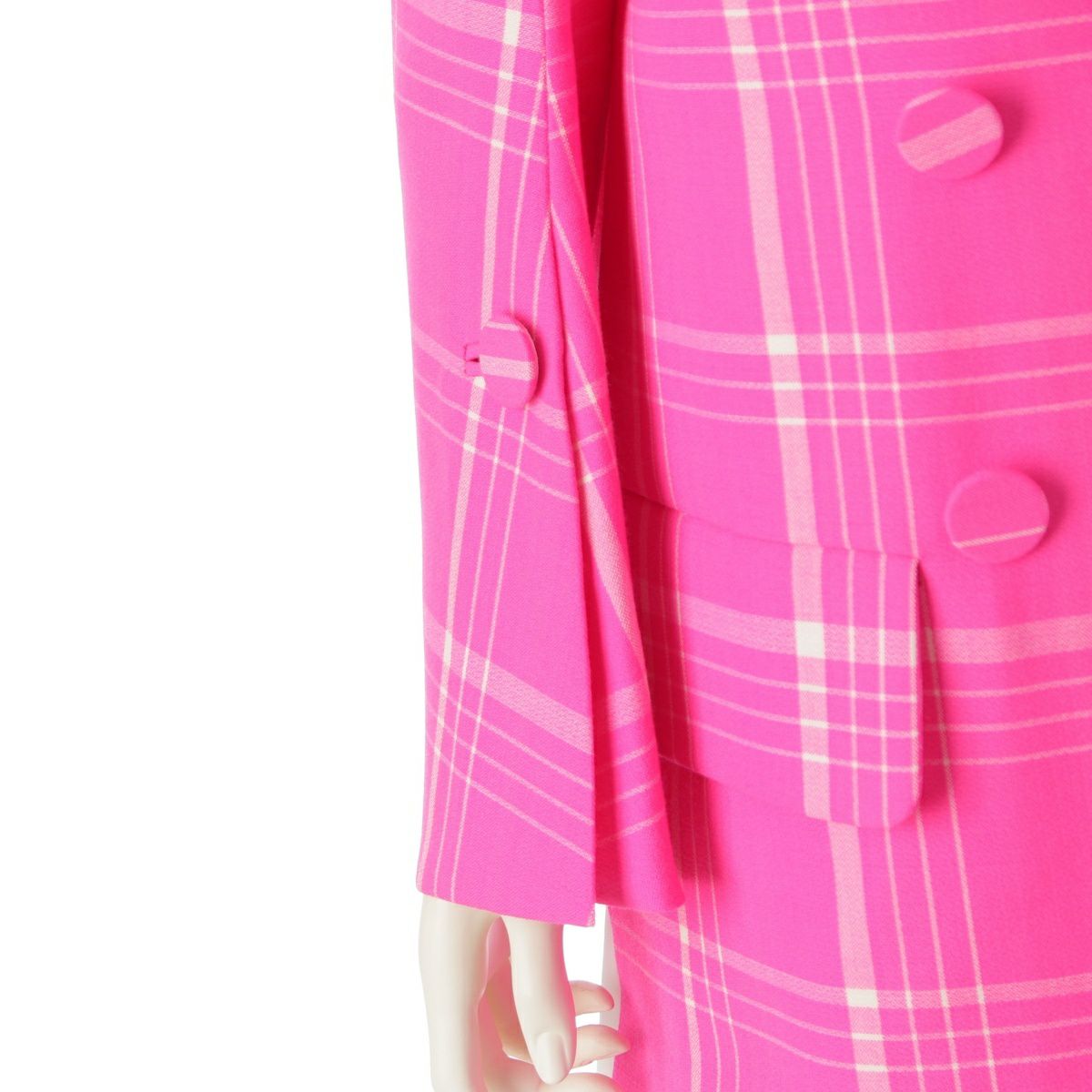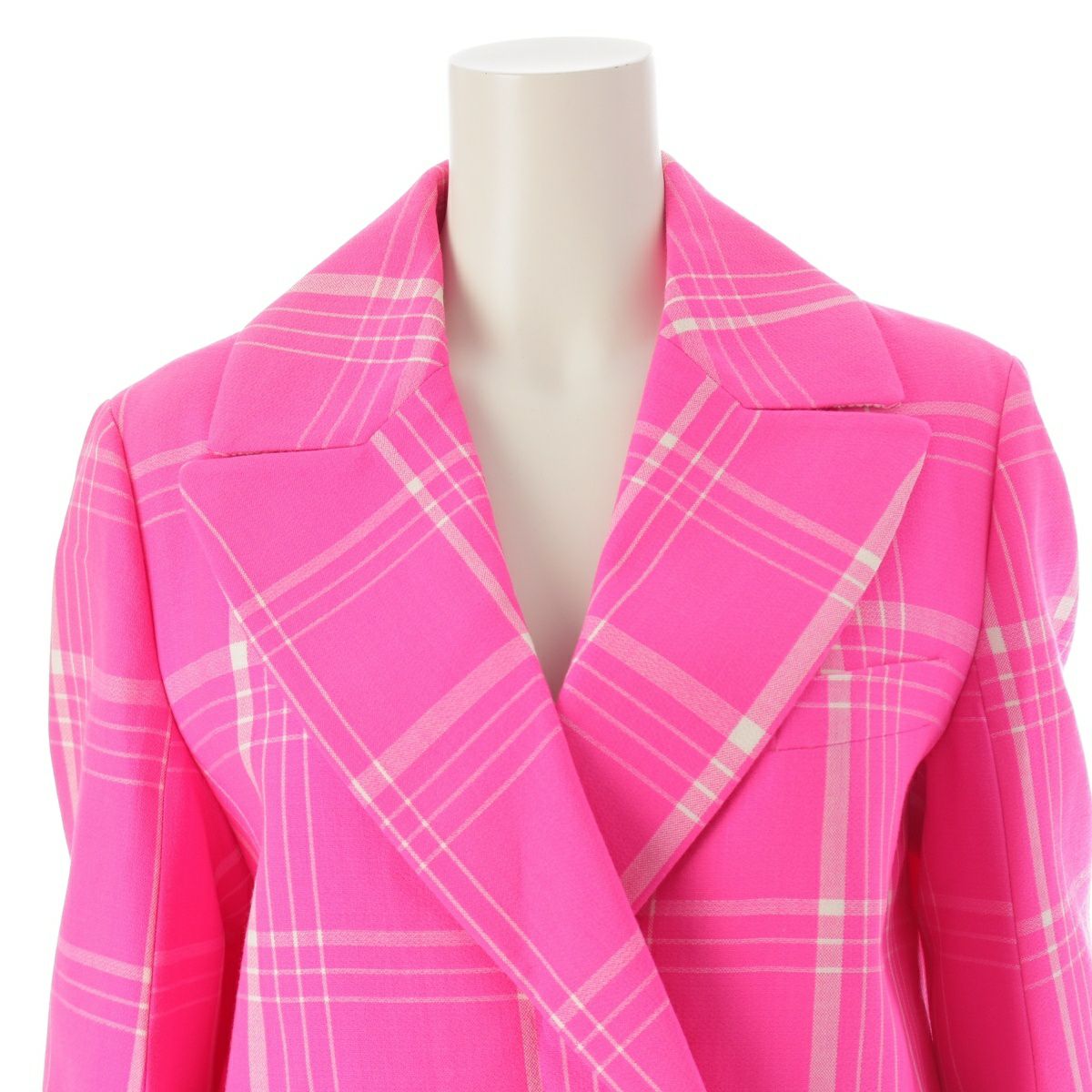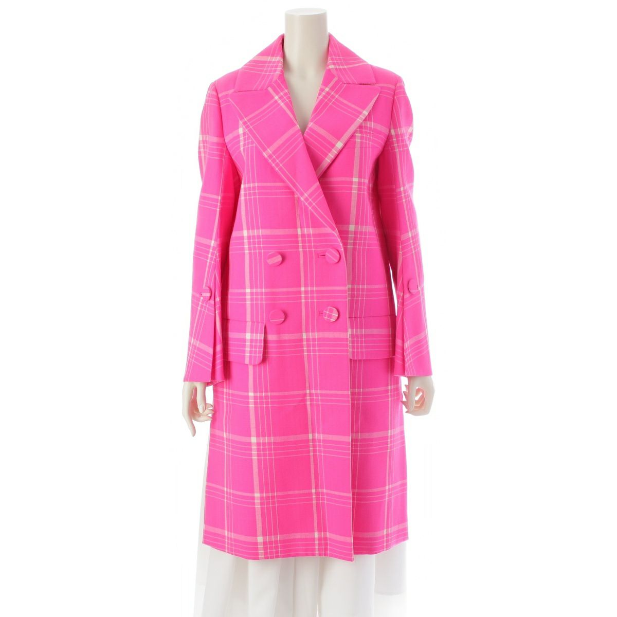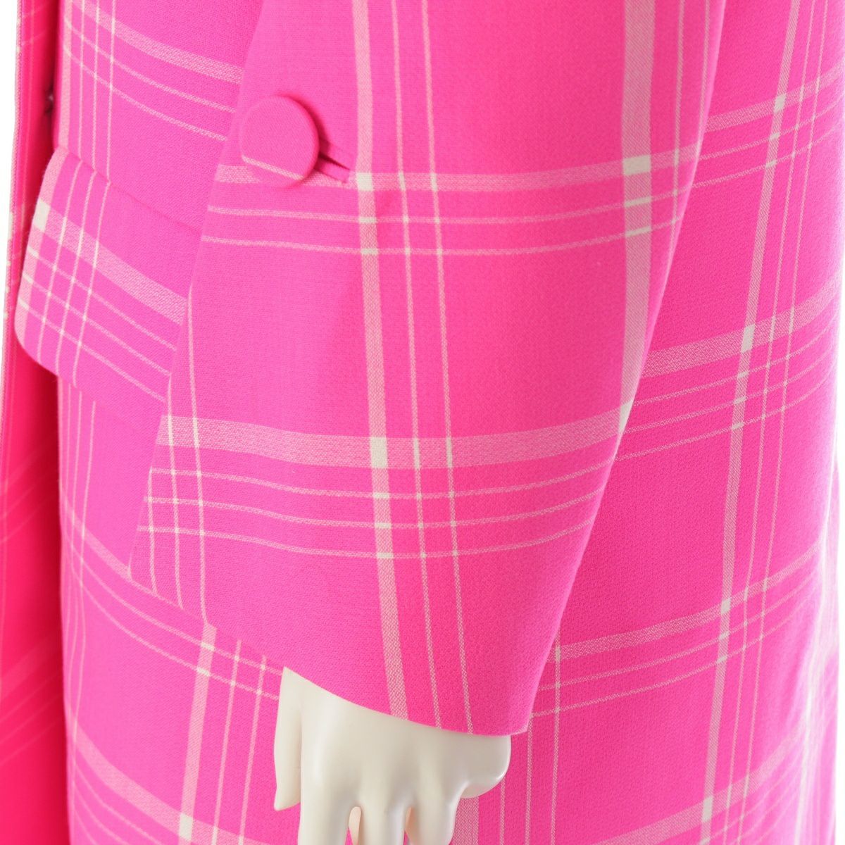フェンディ 17年 ウール チェック柄 ロング コート アウター FF8461 ピンク 38
