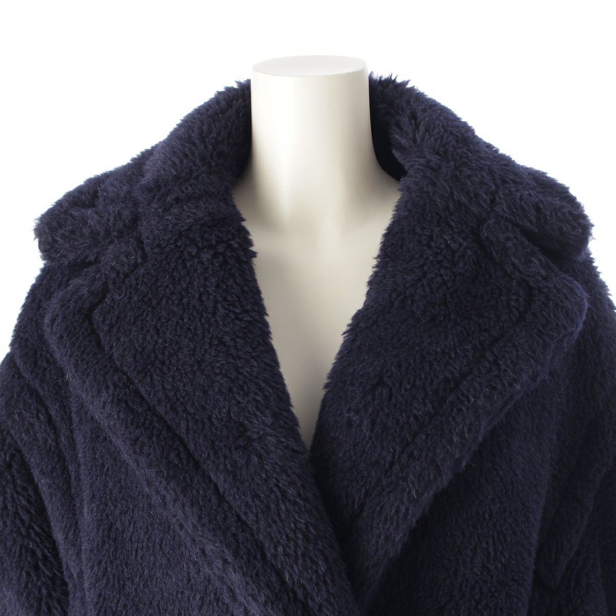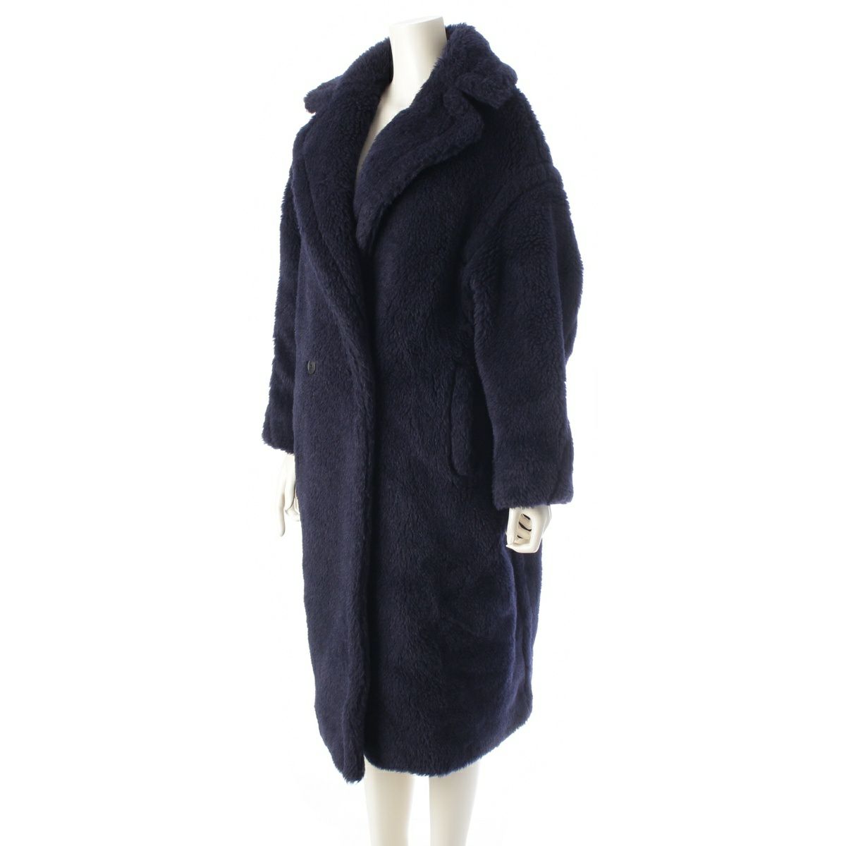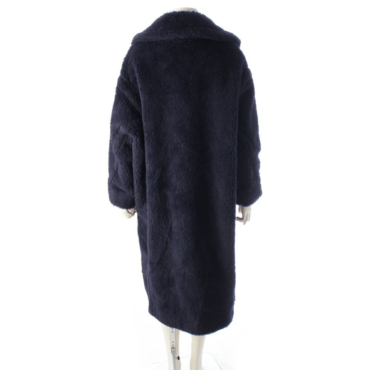 マックスマーラ テディベア ウール×アルパカ×シルク ボア ロング コート アウター ネイビー S