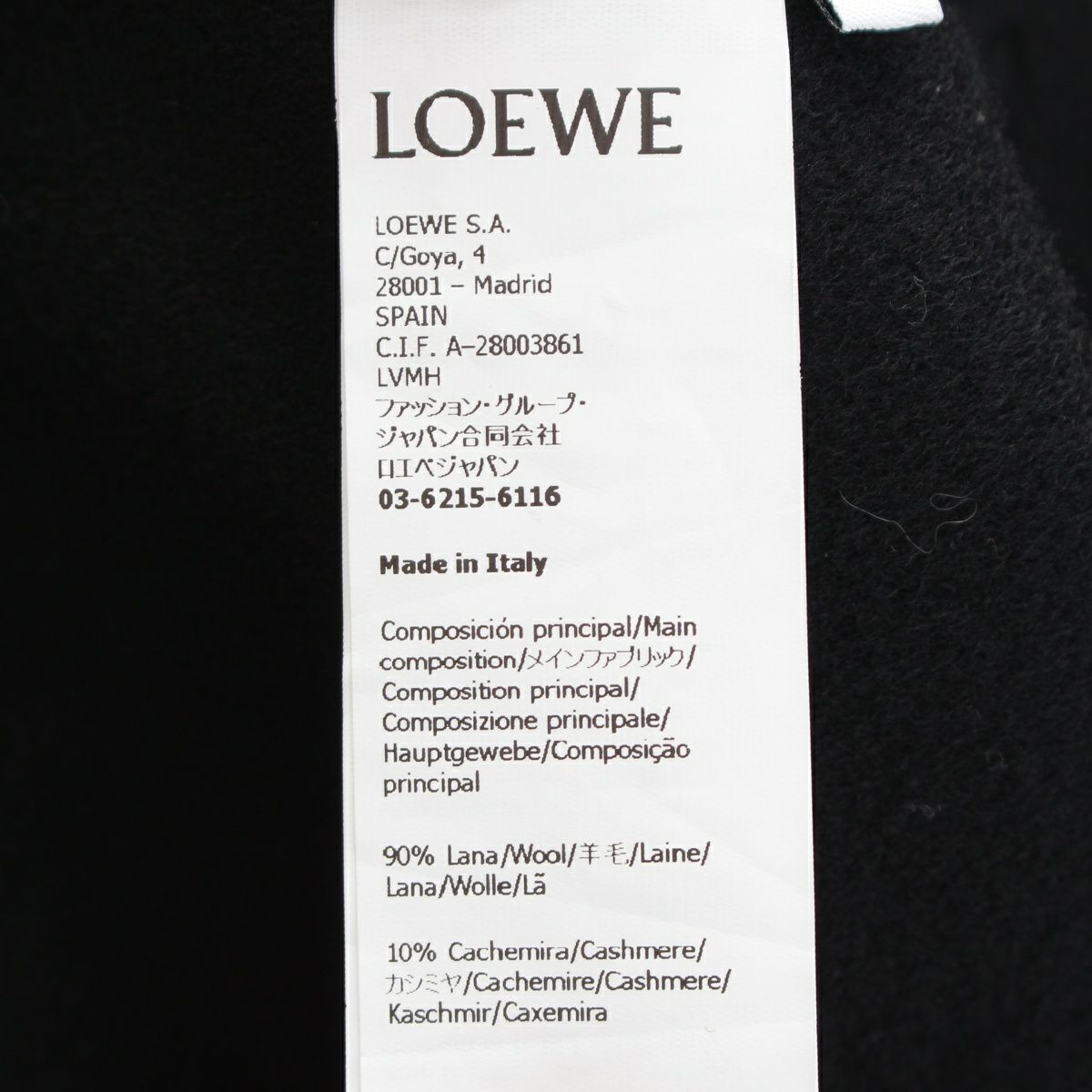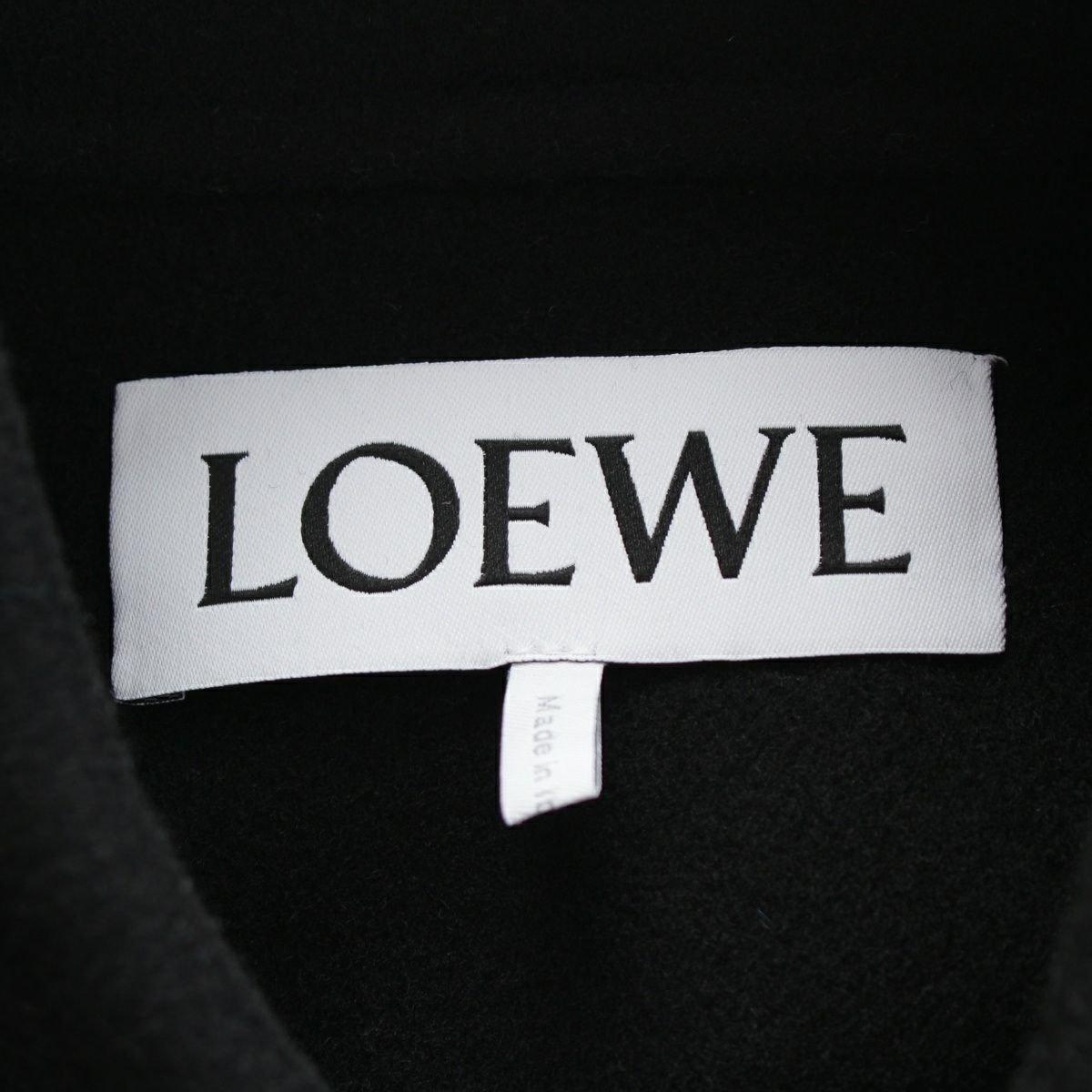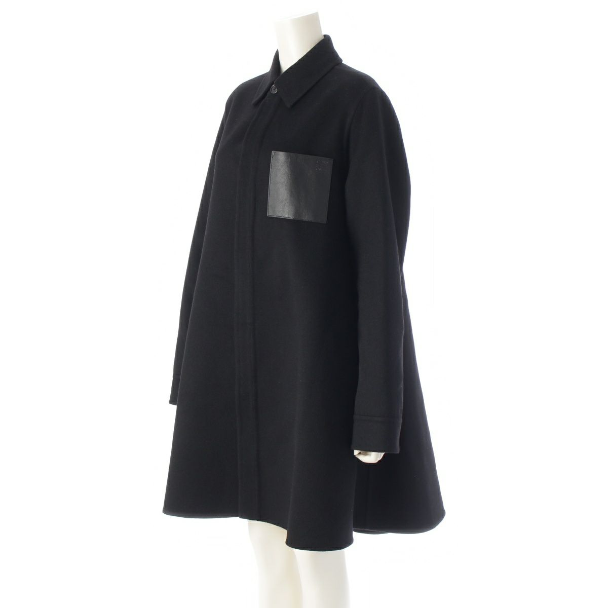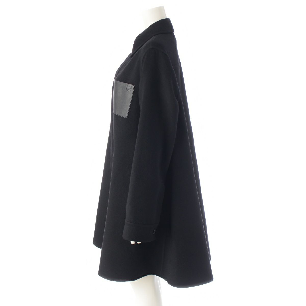 ロエベ ウール×カシミヤ アナグラム レザーポケット ステンカラーコート アウター S359Y01XC2 ブラック 34