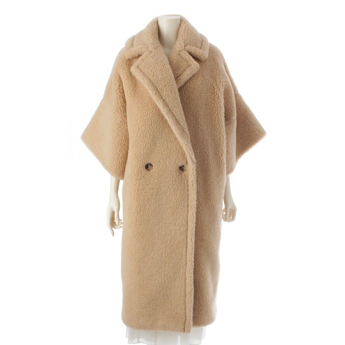 マックスマーラ キャメル ウール シルク テディベア ダブルブレスト ハーフスリーブ コート 23101104316 ベージュ 38