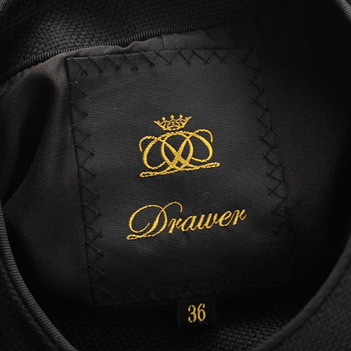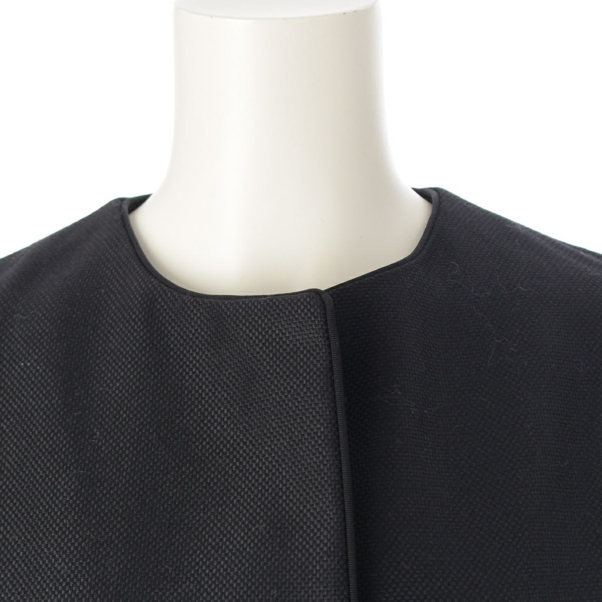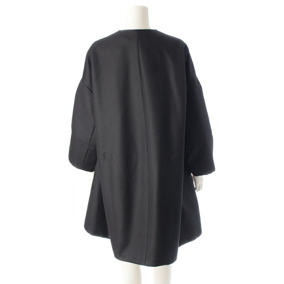 ドゥロワー ウール モヘア ケヌキ レザー ポケット ノーカラー コート アウター ブラック 36