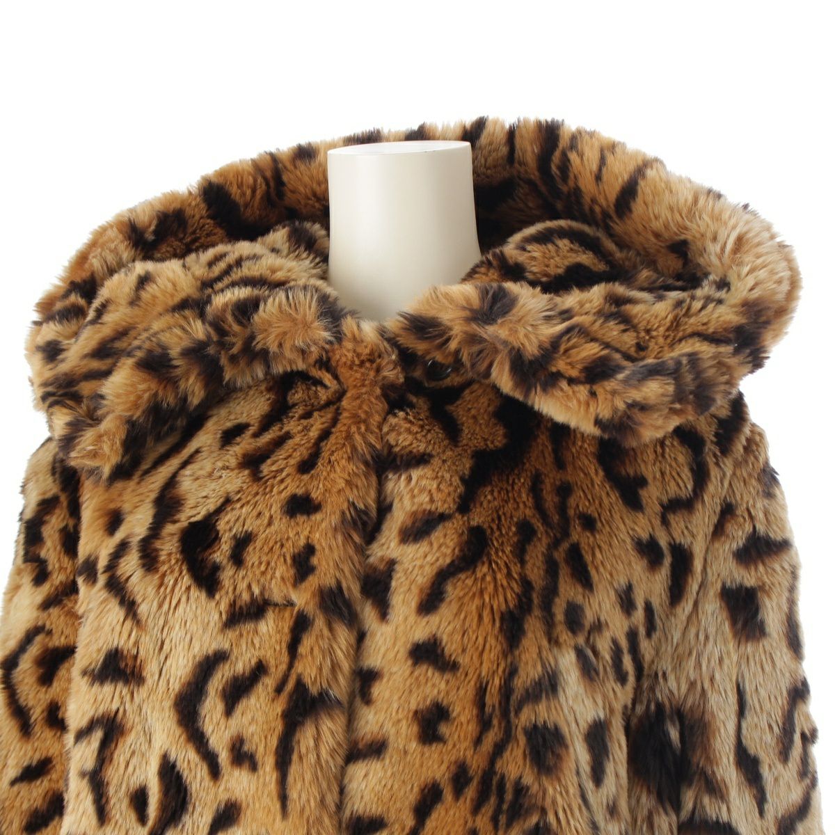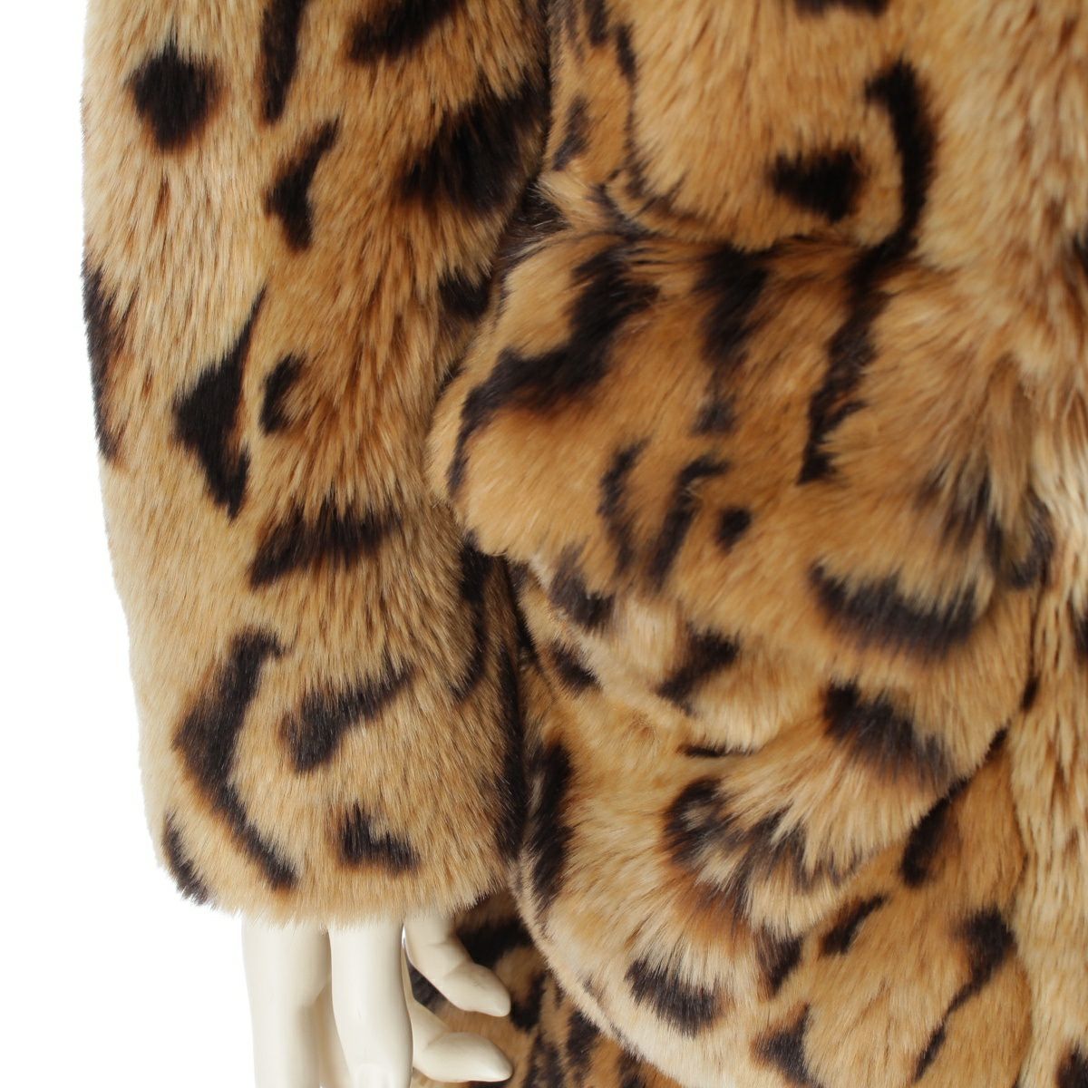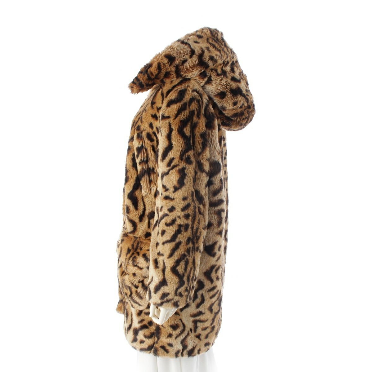 ミュウミュウ 14AW フェイクファー レザー 切替 総柄 レオパード コート アウター MS1065 ブラウン 38
