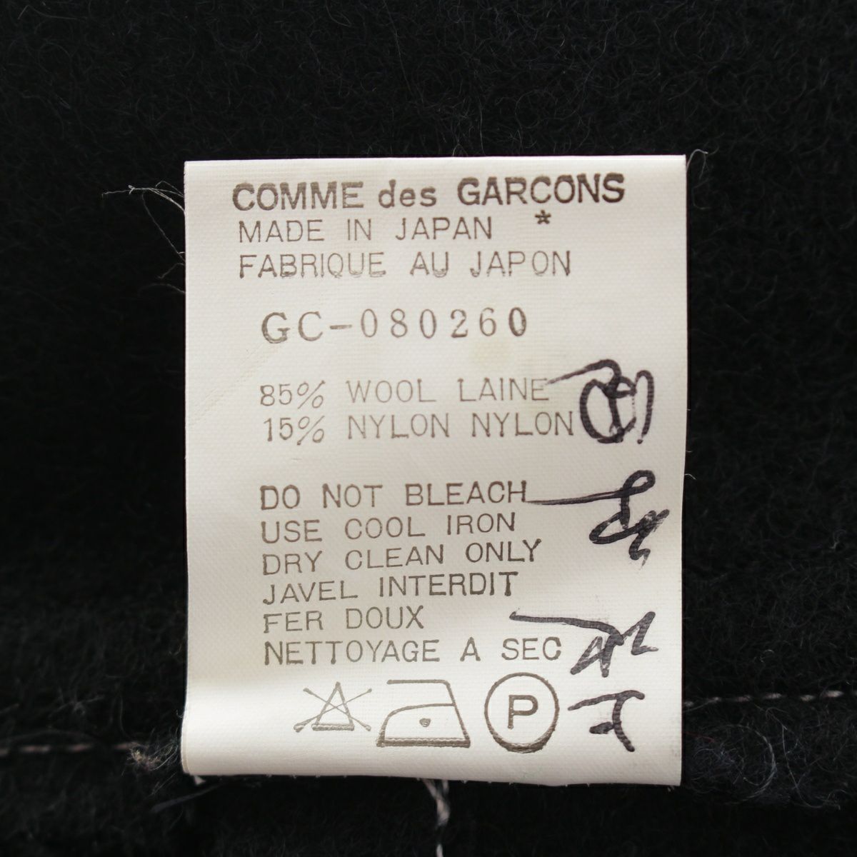 コムデギャルソン ウール ヴィンテージ ラップ コート ブラック